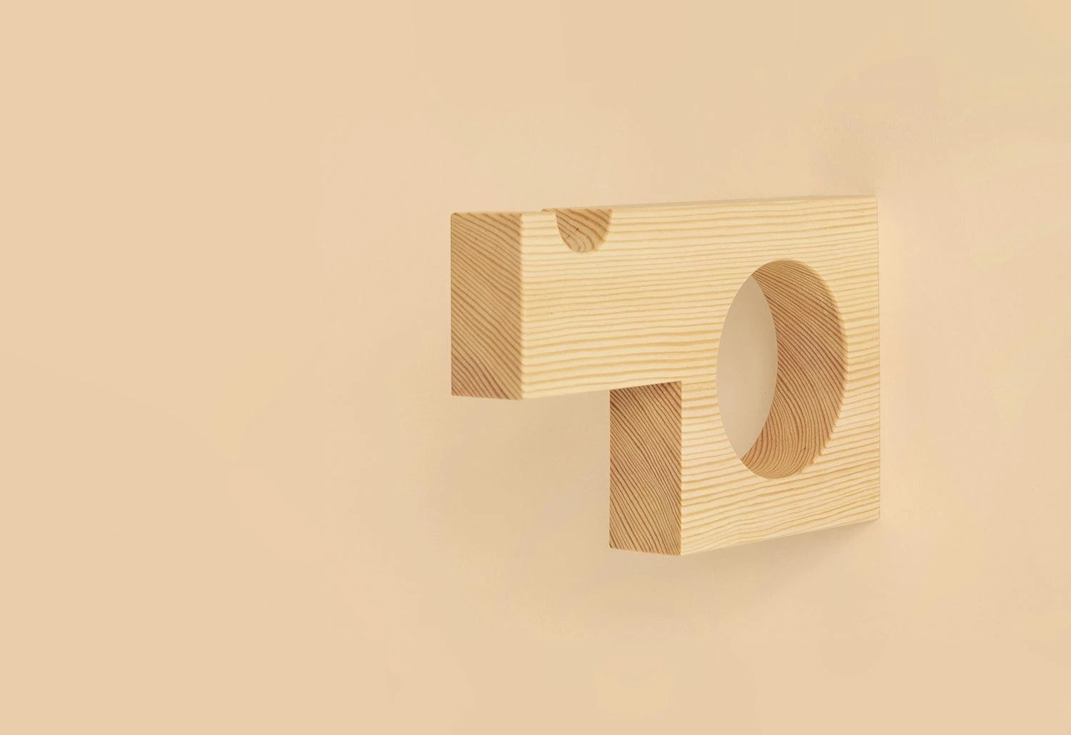 Sarah Kaye Rodden’s sculptural wall hooks are created by extracting shapes from simple blocks of pine. Available in three graphic designs, each decorative void provides a versatile approach to hanging.