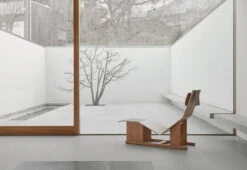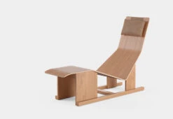 4PM chaise lounge features a fusion of curved and flat parts blending to provide the best possible comfort. The tapered footrest allows the user’s feet to fall comfortably on both sides of the chair enabling the user to get in and out of the chair with minimal effort. The footrest can also be used for temporary seating or as a table surface.