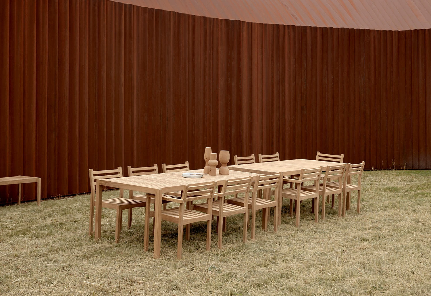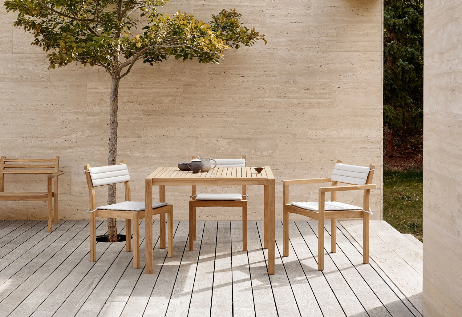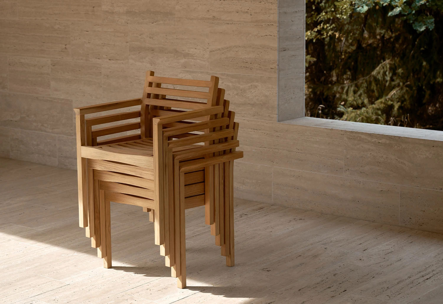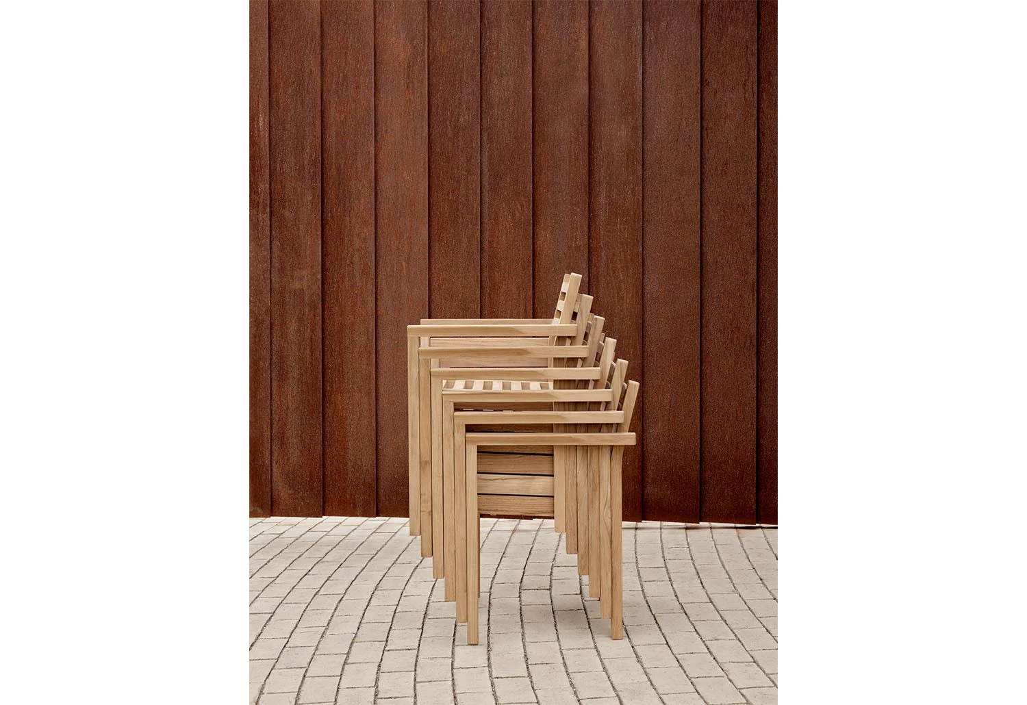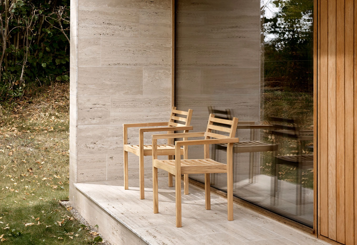 Designed by the Danish architect Alfred Homann, the AH Outdoor series comprises eleven pieces of outdoor furniture united through materiality and a refined design expression. The generous AH502 is a comfortable dining chair with gentle slopes on the armrests, seat, and back, providing a high level of comfort.