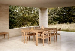 A seamless blend of clarity, and softness, the furniture embodies a sleek, timeless look crafted from untreated, FSC-certified teak, a hardy wood that patinates gracefully over time. The range can be further customised with optional weather-resistant textile cushions for added comfort.