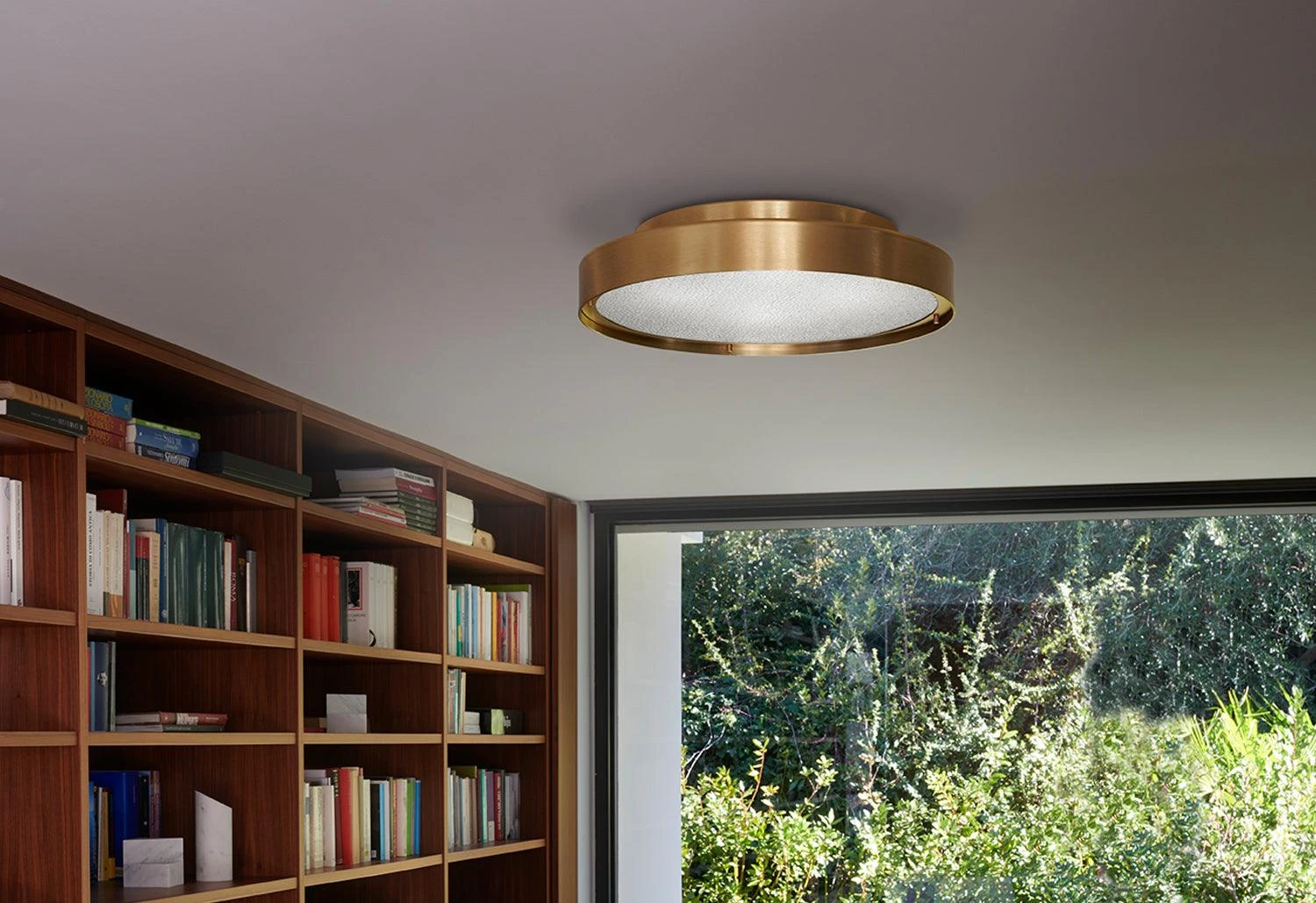 The Berlin wall and ceiling lamp is a modern reinvention of the traditional discreet lamp. It has a slender profile made from a thick ring of metal, this minimalist form reminiscent of Art Deco aesthetics.
