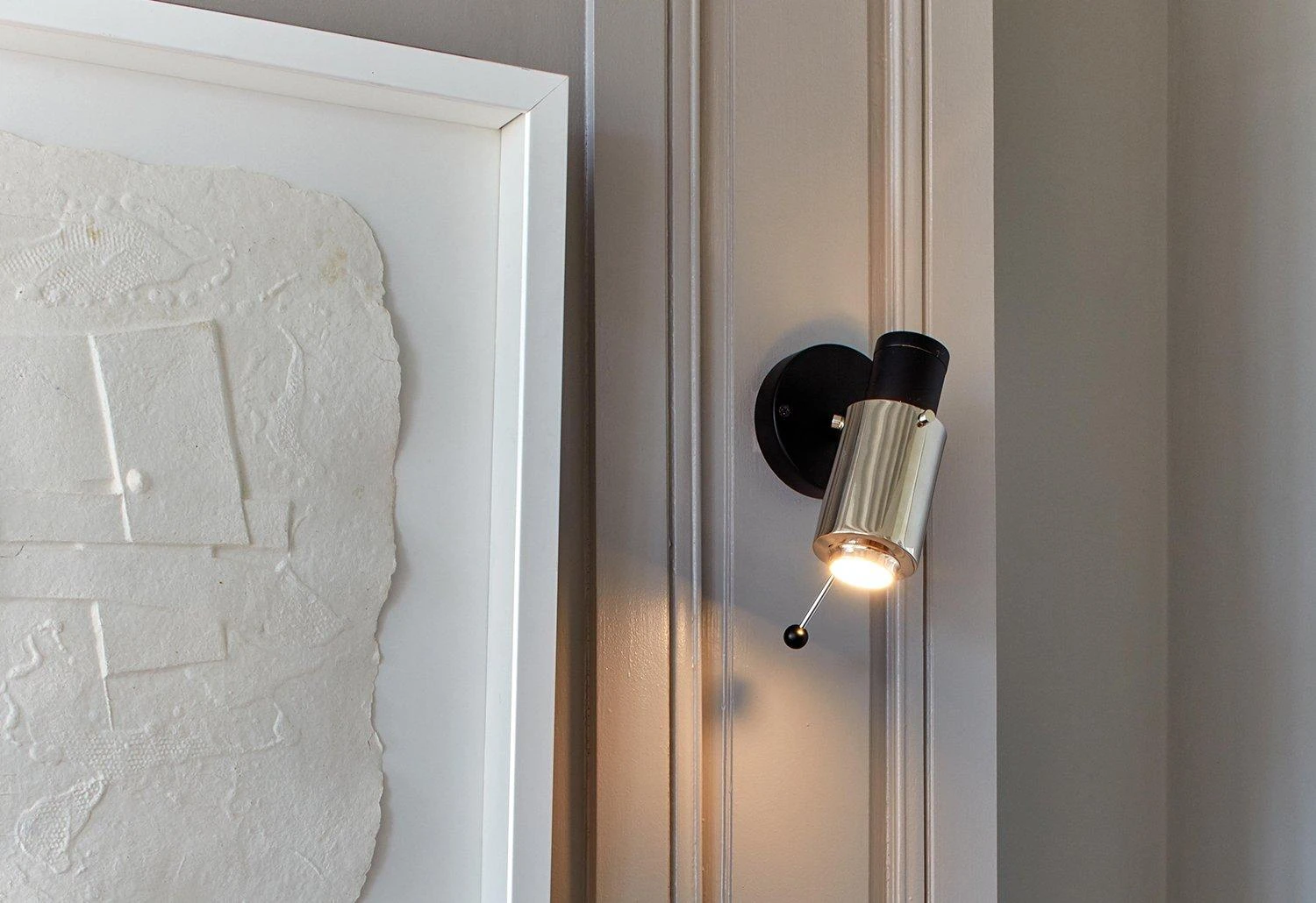 Drawing inspiration from 1950s modernist design, the Biny spotlight has a distinctively industrial aesthetic. With an original ball joint, the wall-mountable spotlight can be rotated through 330° with an up or down arc of 88°. This allows a beam of light to be focused on a chosen area with ease.