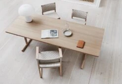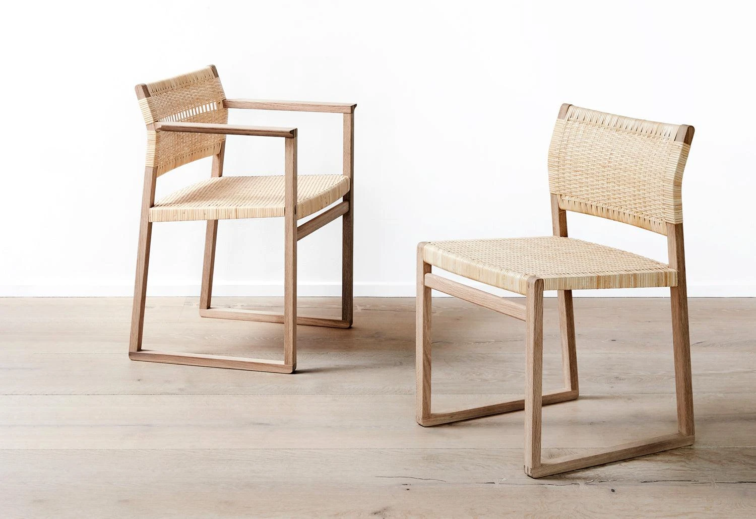 The BM61 chair has a comfortable slender shape with a carefully calibrated angle of the backrest for relaxed seating at the dining table or as a side chair. The chairs use linen or cane webbing for the seat and back together with a solid wood frame, a choice of honest materials. It is a comfortable dining chair with an aesthetically pleasing quality making it suitable for commercial use and private homes.