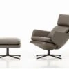 The series gets its dynamic appearance from the side structures where the armrest forms bridges across the angled front and back legs. It is the epitome of luxurious comfort; featuring an ergonomic, carefully considered frame and angled backrest that gently supports the body.