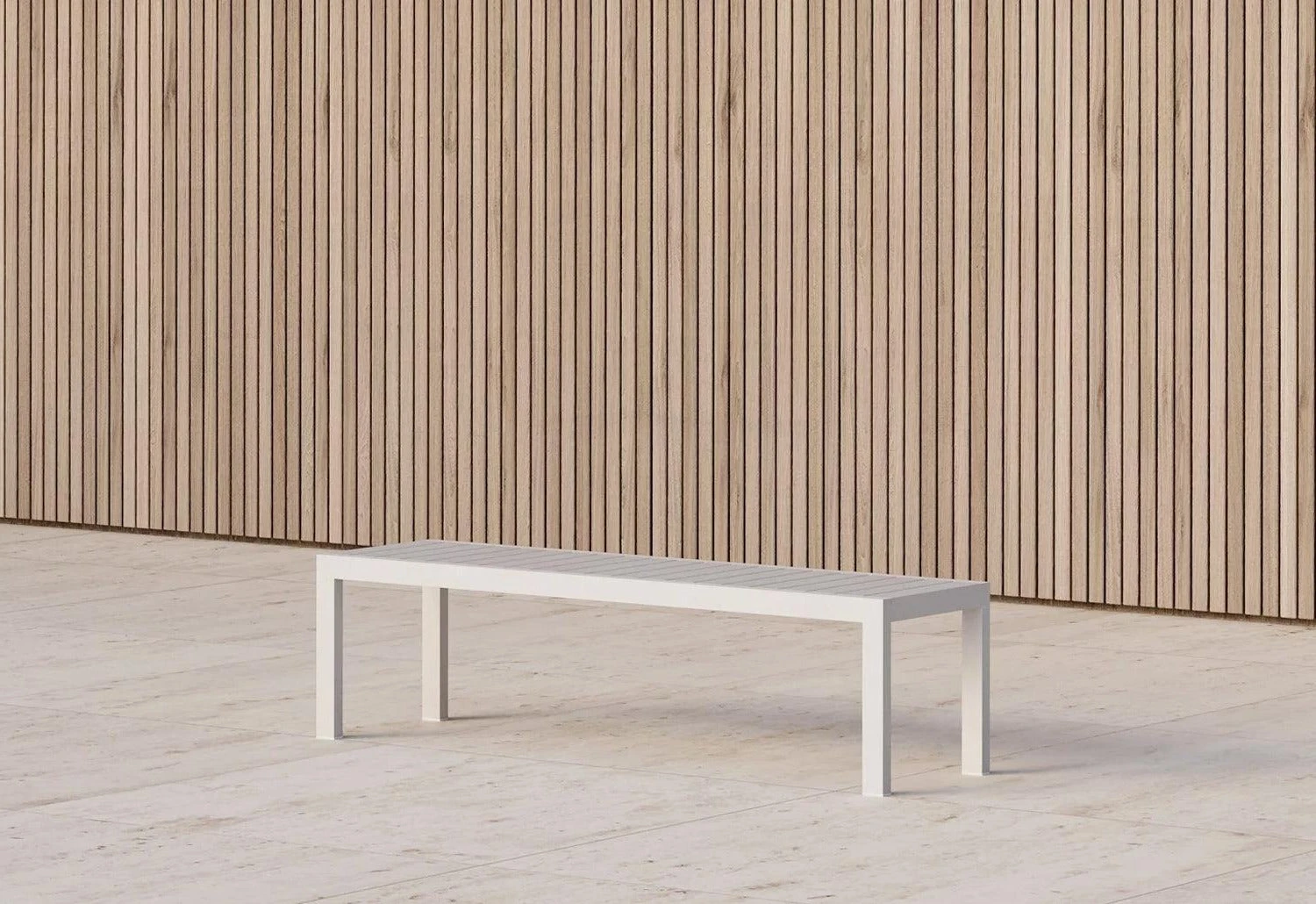 The outdoor bench is made to complement the Eos rectangular or square tables. Suitable for commercial or residential use.