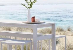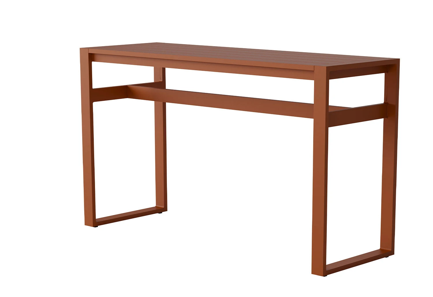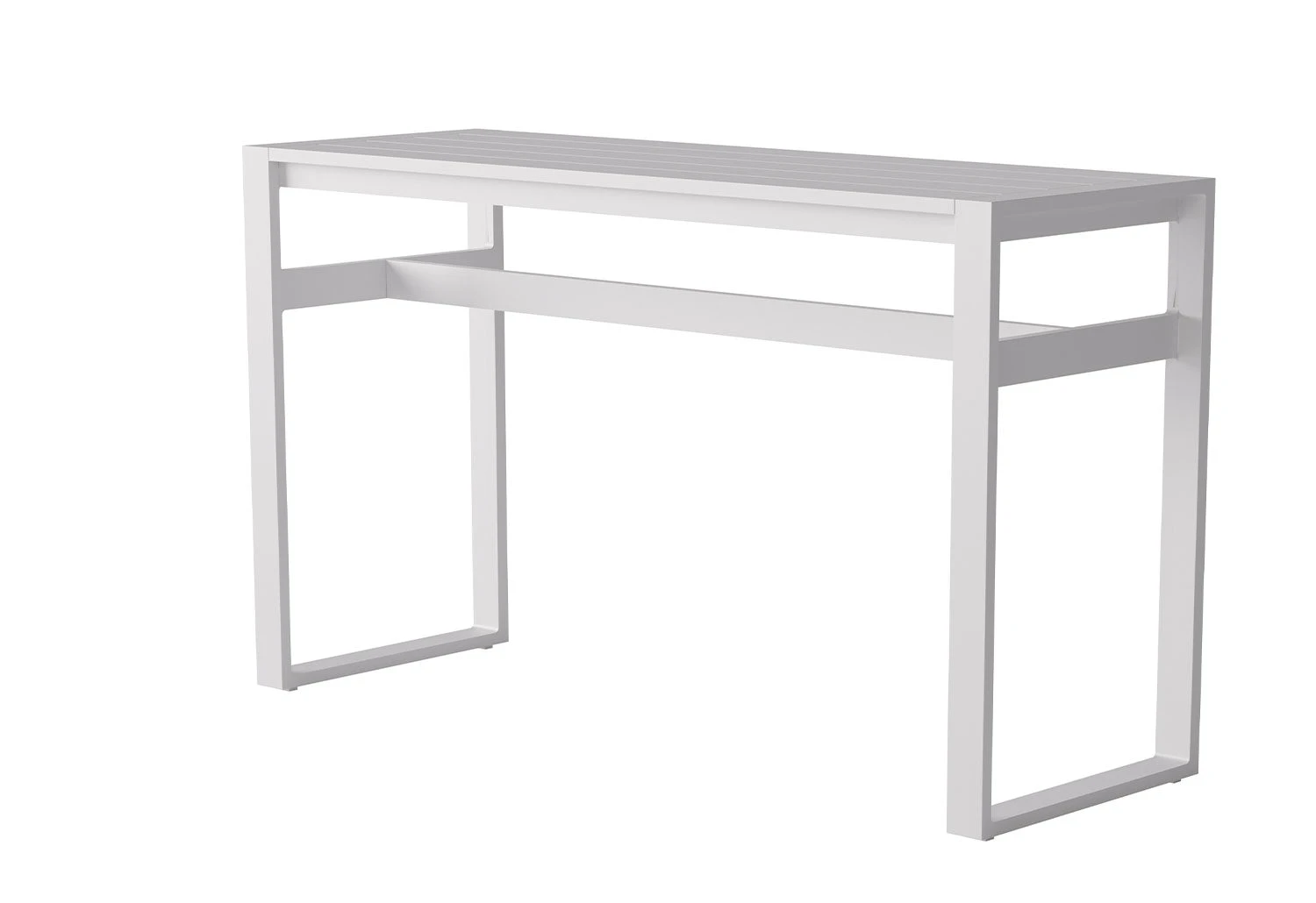 The outdoor rectangular bar tables are built to complement the Eos backless bar stool. Suitable for commercial or residential use.
