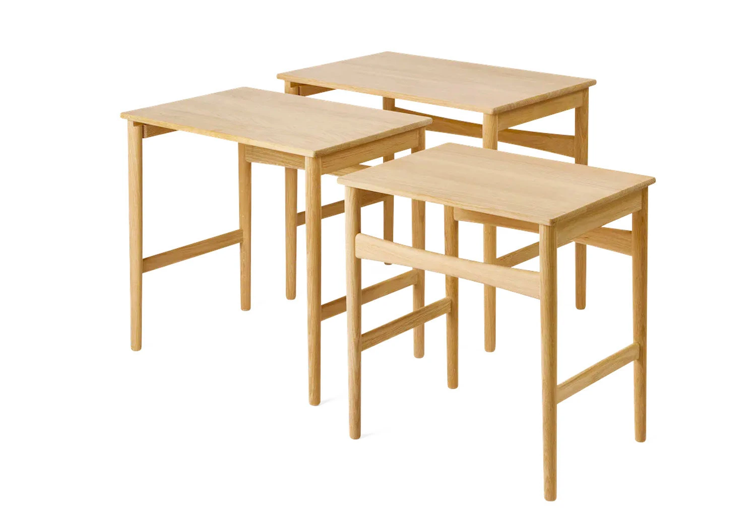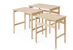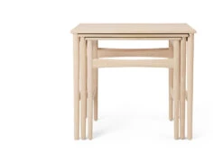 Produced initially in 1952, the CH004 Nesting Tables are defined by their compact and organic appearance. The design features tapered legs, rounded edges, and subtle curves on the front and rear support, with the tables perfectly proportioned to nest together.