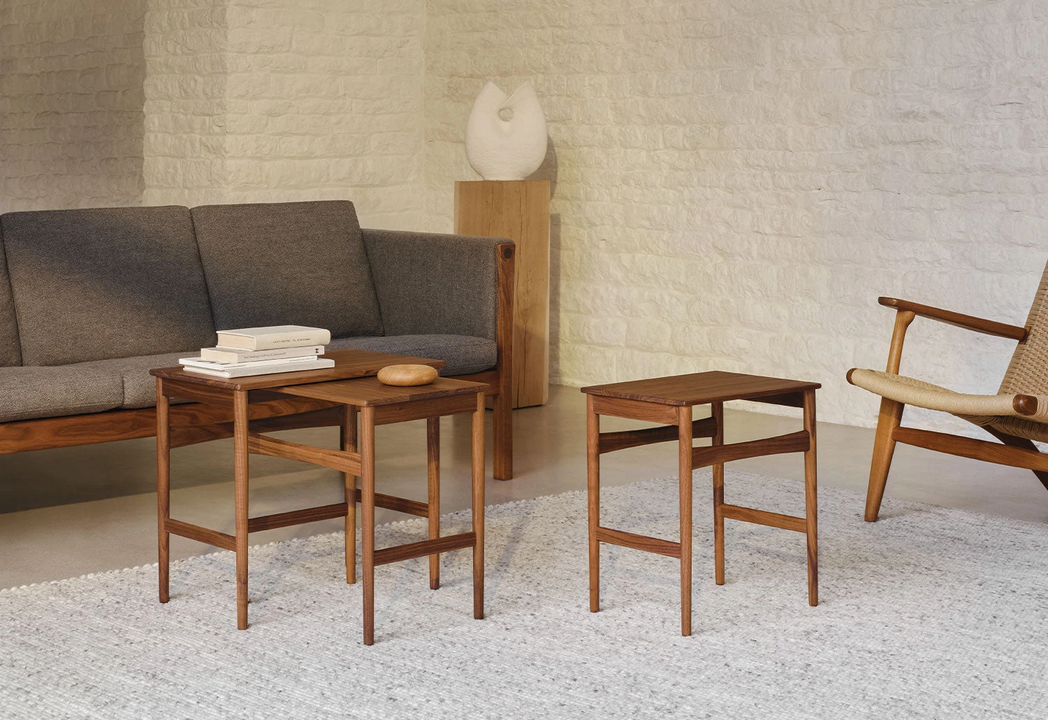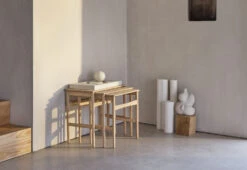 Wegner’s unique talent of designing furniture that blends seamlessly with its surroundings while remaining timeless is evident in these tables, which were created to be functional and space-saving – two highly relevant properties today.
