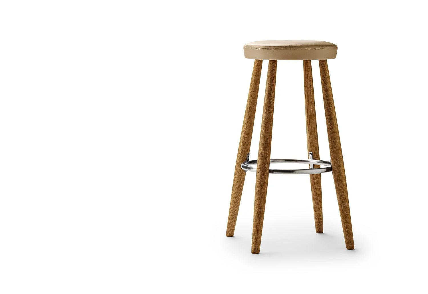 The CH56 and CH58 are upholstered bar stools, designed by Hans Wegner in 1985, that are both comfortable and practical. The Weger bar stools are available in two sizes and have solid wood legs, leather seat and stainless steel foot ring.