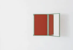 The frame, which features rounded inner corners, is available in four finishes; untreated brass, dark brown, bamboo green and lacquered brass, and is well suited to a range of interior settings.