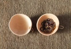Available in two sizes and a choice of colours: terracotta, ochre, cream, black, and khaki.