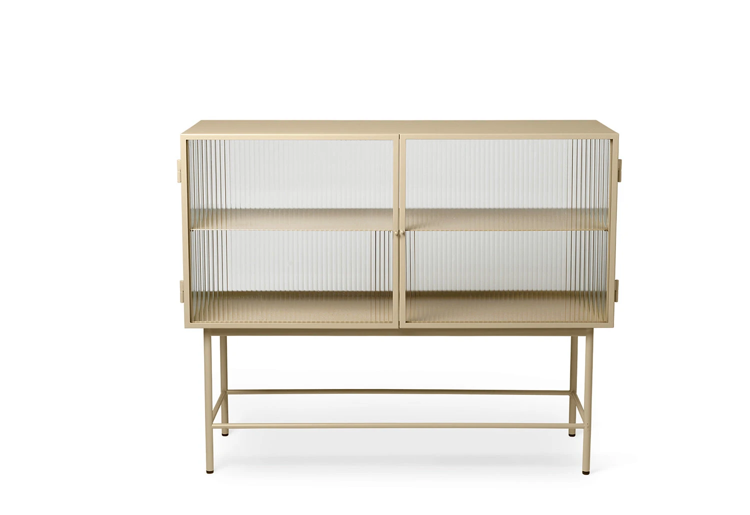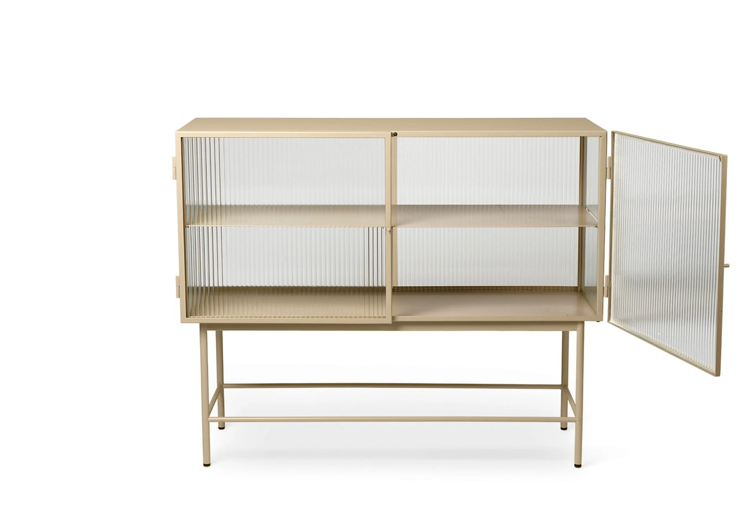With its sleek metal frame and corrugated glass walls and doors, the Haze Sideboard seamlessly integrates into any interior style. Plus, its sophisticated design keeps your belongings out of sight, making it the ideal storage solution for those who value privacy.