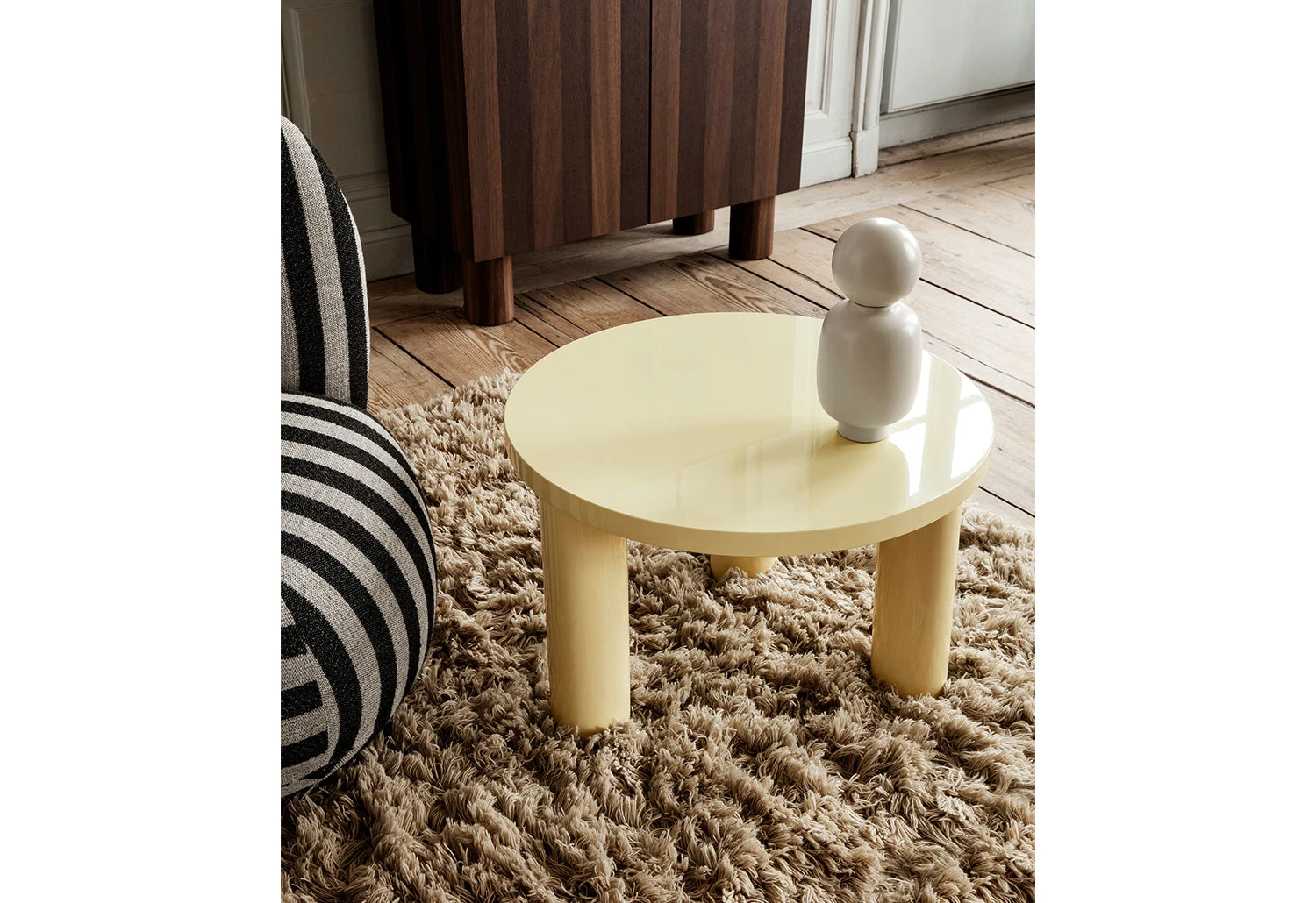 Crafted from FSC™-certified wood and finished with high-gloss piano lacquer, this table is stylish and eco-friendly. With a range of soft colours to choose from and three sturdy cylindrical legs, the Post Coffee Table is a distinctive addition to any living room.