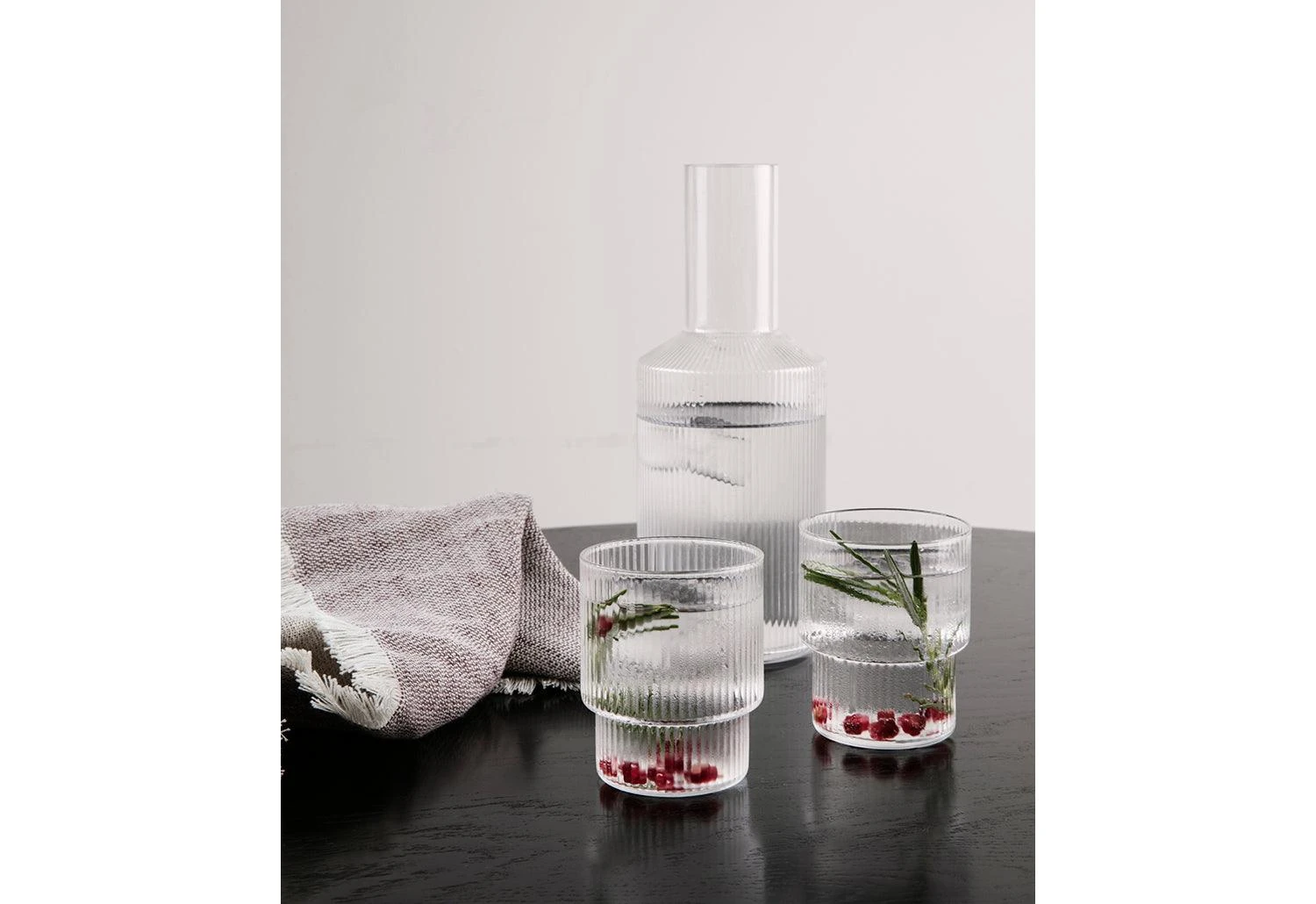The ripple pattern is achieved by blowing the glass into a mould, which adds a degree of elegance to the fine glassware.