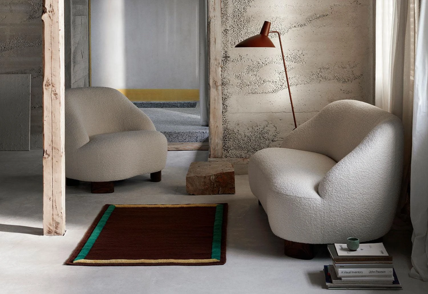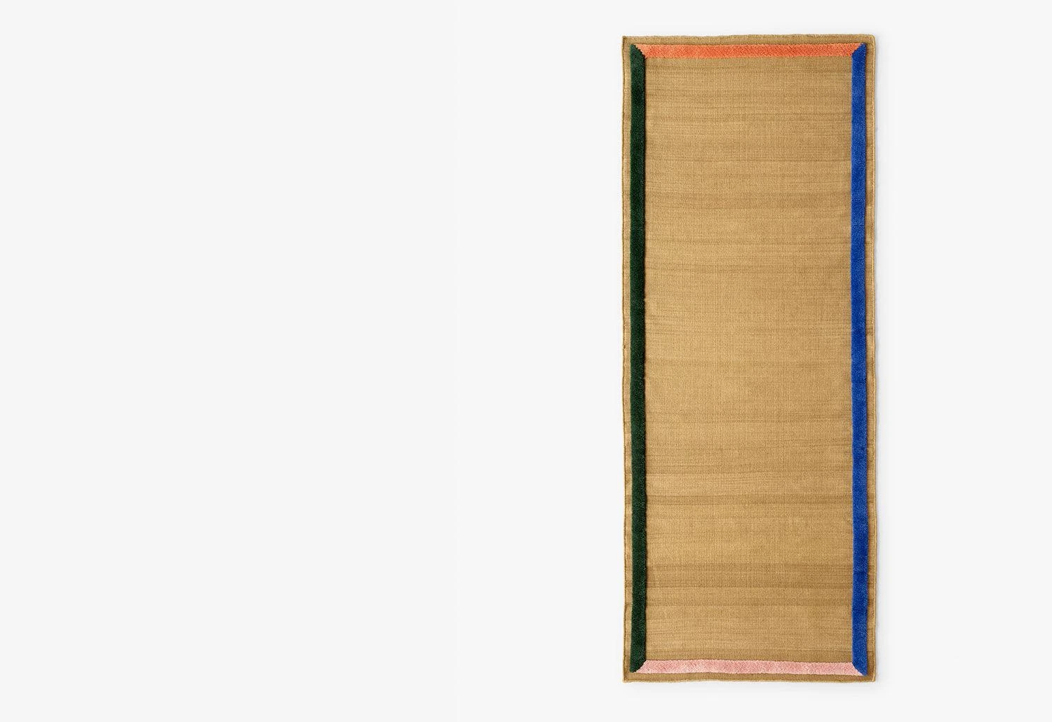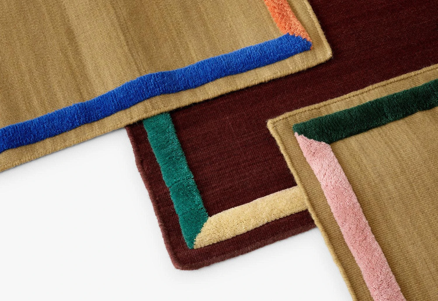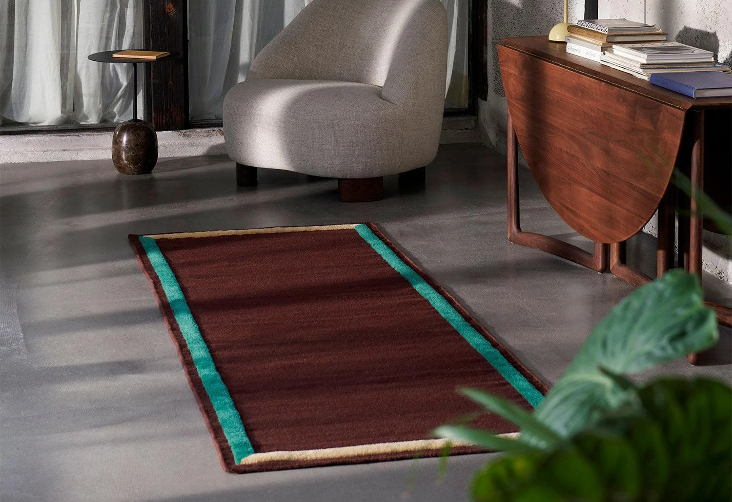Designed by the Danish-Swedish design studio, All the Way to Paris, Framed is a handcrafted rug that introduces subtle colour accents to its interior. Its name comes from the contrasting coloured borders, which explore the relationship between the frame and the framed.