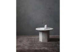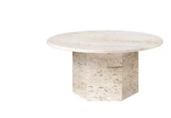 The tables are crafted using travertine stone from Italy. The majestic size of these objects utilises the true potential of the material showing the distinctive organic hues, changing veins and natural patina of travertine.