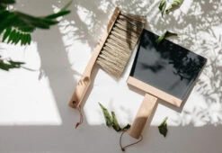 The Hand Brush and Dustpan Set is an aesthetically pleasing household cleaning accessory which no longer needs to be confined to the depths of your cupboard. Inspired by old collector cars and traditionally considered masculine materials, namely leather, the robust broom is accompanied by a sturdy metal pan, making it ideal for cleaning smaller messes.
