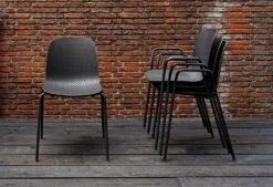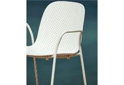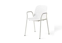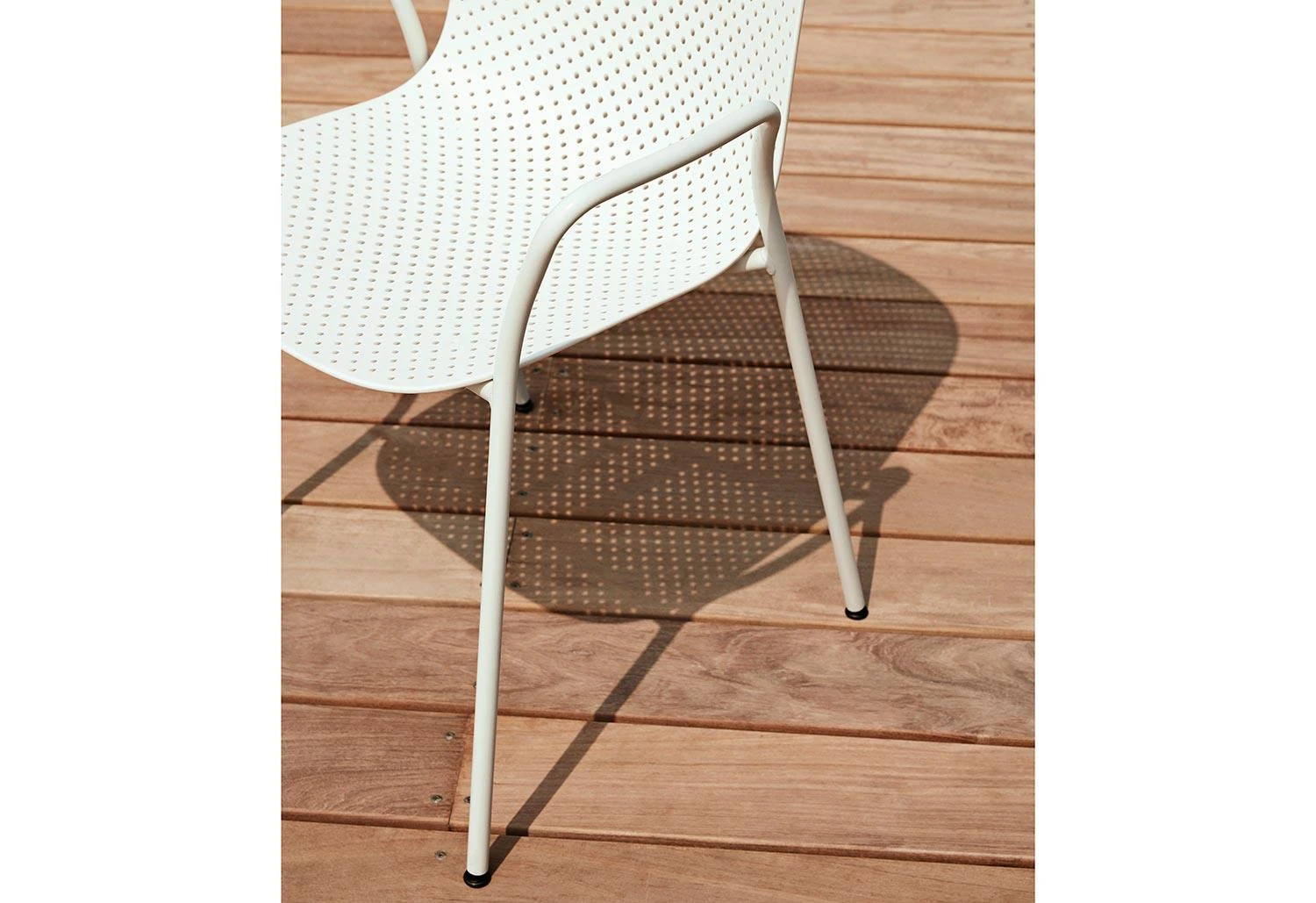 The 13Eighty chair derives its name from the number of holes in its moulded polypropylene shell. Suited to both indoor and outdoor use, these perforations are designed to allow rainwater to drain away when the chair is used outdoors.