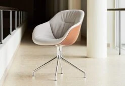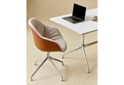 The AAC 121 Soft Duo chair is part of Hee Welling’s versatile About A Chair series. The contemporary office chair has an inviting soft quilted shell with a contrasting leather-back, elegantly composed with a formal aluminium base. The Soft Duo chair features a high backrest and generous seat, characteristic of the ACC series.