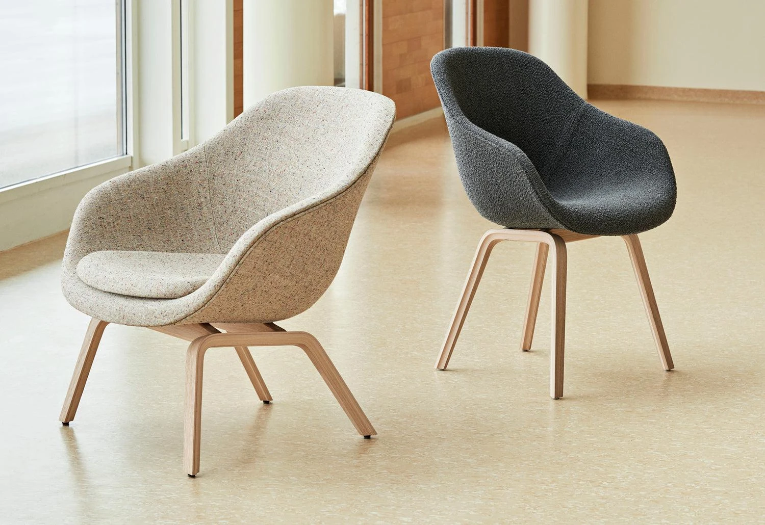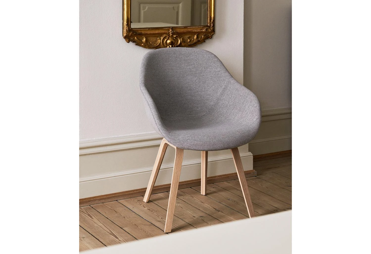 The timeless AAC 123 features a solid wood base with an upholstered organic shell. The idea behind the About A Chair collection was to develop a chair of conspicuous simplicity. It is a chair which works just as well around the dining table as around a conference table, in a canteen or at the office. The ambition of designer Hee Welling has been to combine form, function, comfort, detail and aesthetics.