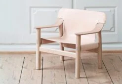 The leather is purposefully left untreated to acquire a rich patina similar to classic mid-century designs, while the canvas option provides a range of colours to allow an easy refresh to the chair’s aesthetic.