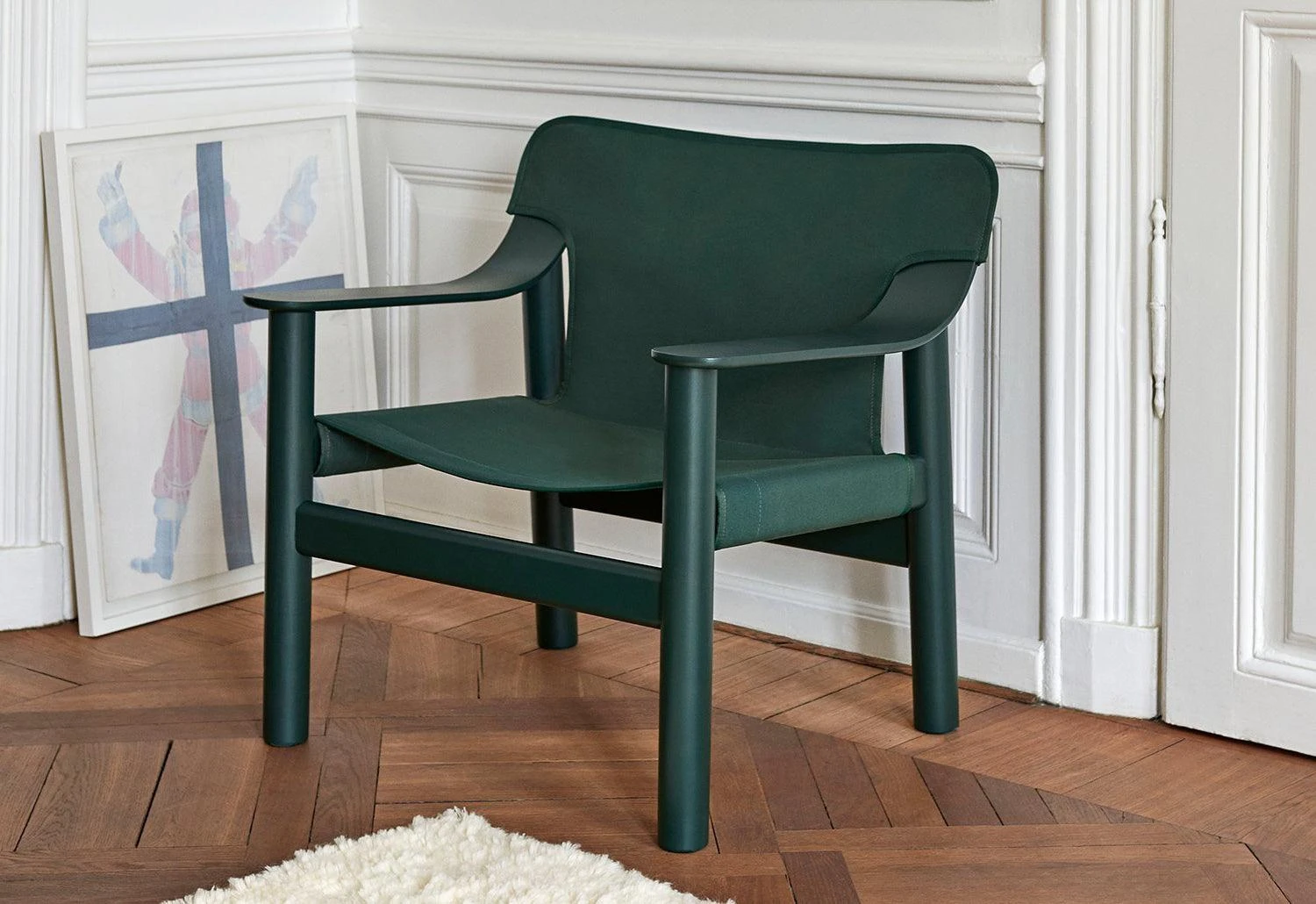 The Bernard lounge chair pairs a solid timber frame with sling-like upholstery that slips over the frame in saddle leather or industrial-strength marine canvas. The timber frame is a simple typology, with subtle detailing and a timeless outline.