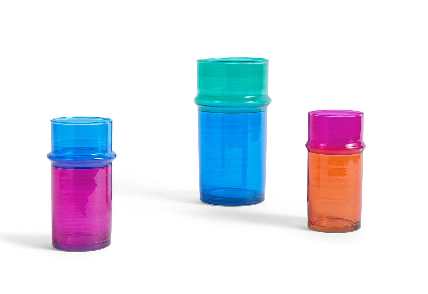 The Moroccan vase is a collection of colourful hand-blown glass vases. A vibrant and characterful addition to any space, the glass vase comes in a colour-blocked design.