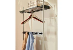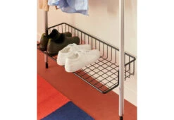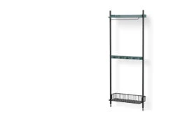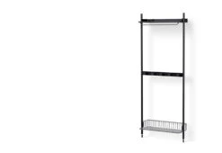 The minimalist shelving is available in several colours and pre-configured combinations, which include practical elements such as flat shelves, wire shelves, work desks, cabinets and clothing hooks. The combinations can be used alone or combined to create custom systems for your environment.