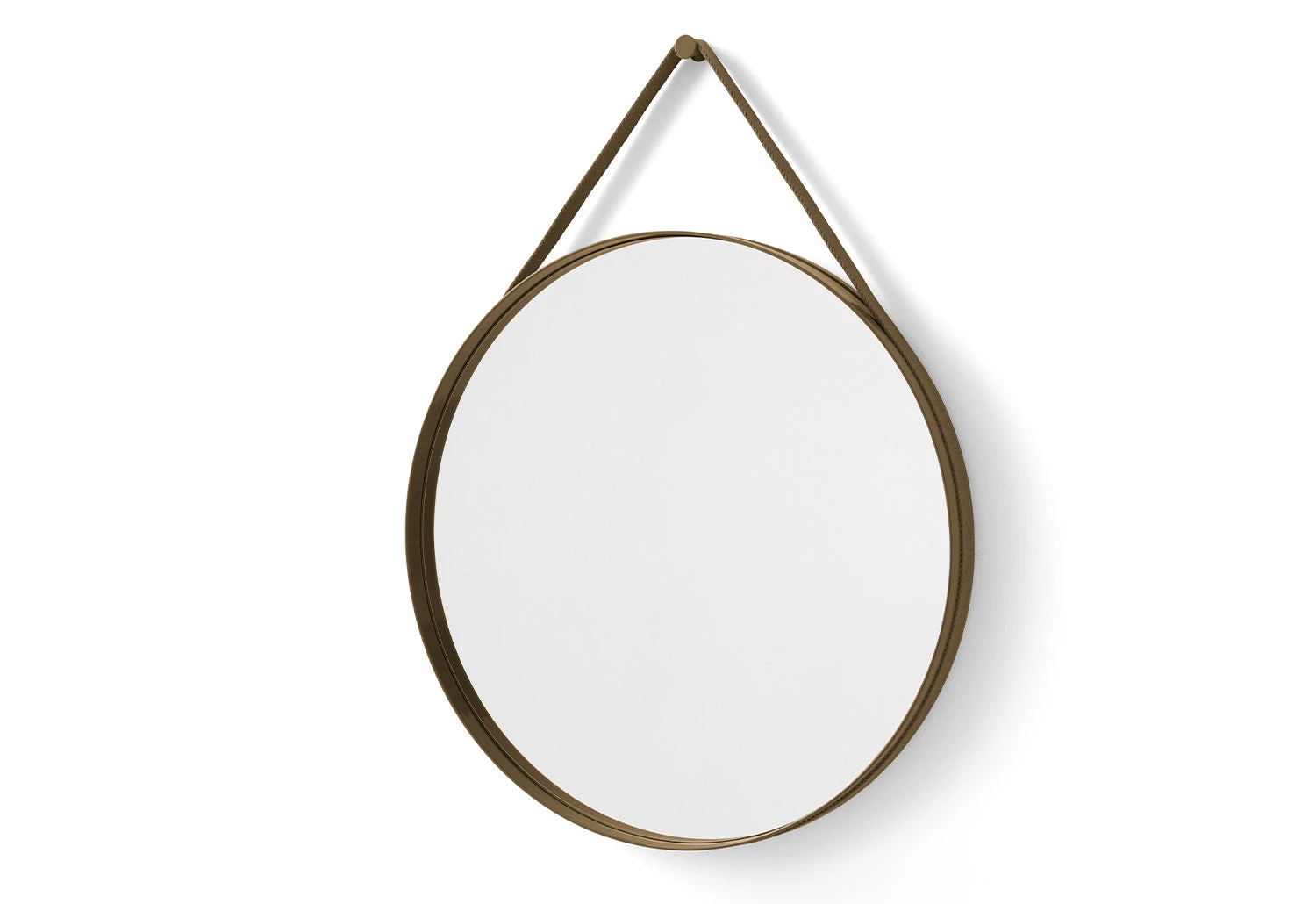 Introducing the HAY Strap Mirror No.2 – the perfect addition to your home decor. With its sleek and simple design, this mirror is not only functional but also stylish. The subtle groove around the edge is not only aesthetically pleasing but also contains a woven strap for easy mounting on your wall.