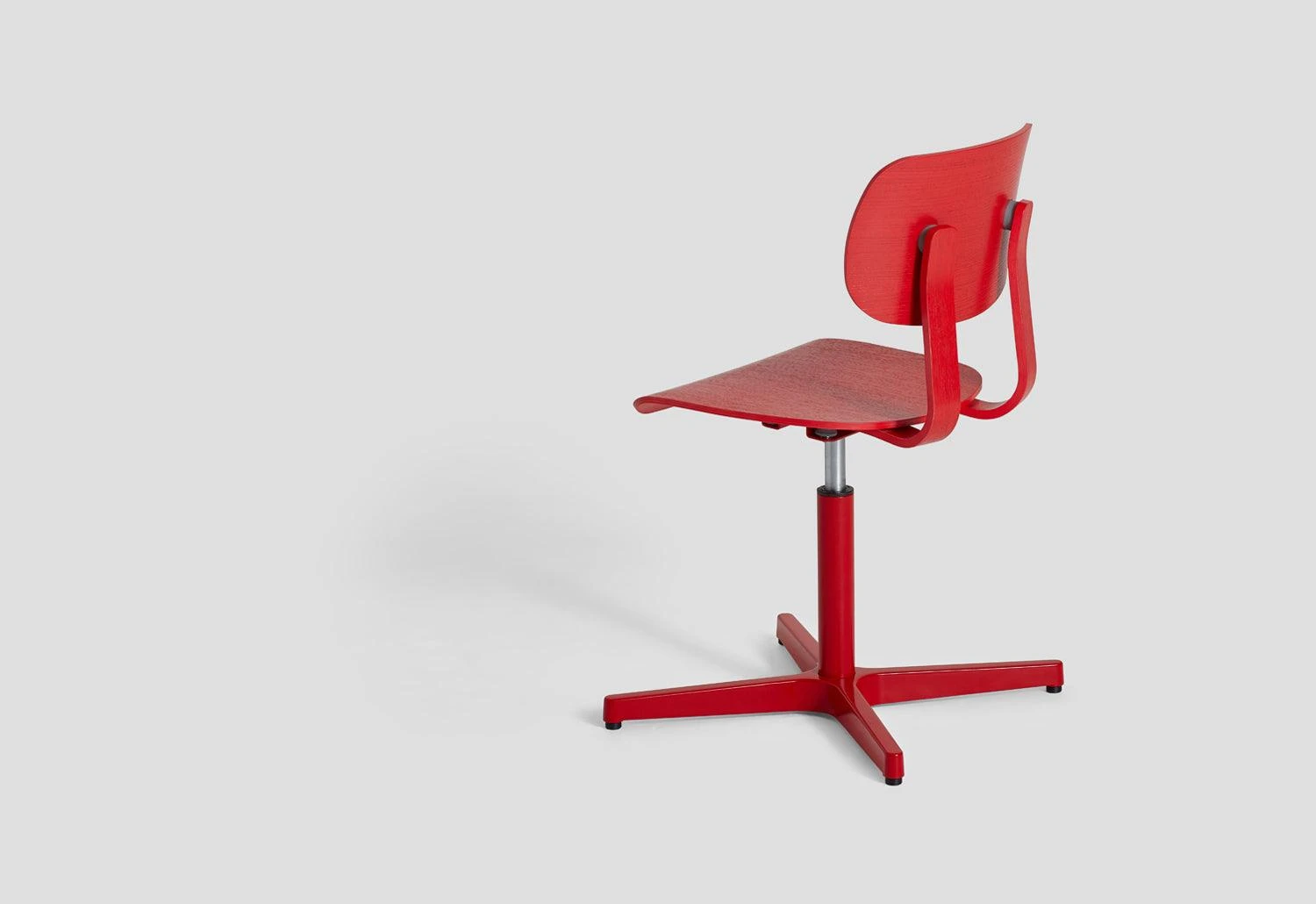 The HD chair was designed in response to the growing trend for flexible workspaces. The seat and back are formed of ergonomically moulded plywood to provide ample support to the sitter. Mounted on rubber bushings, the seat and back respond to the movements of the body, improving comfort over extended periods of sitting.