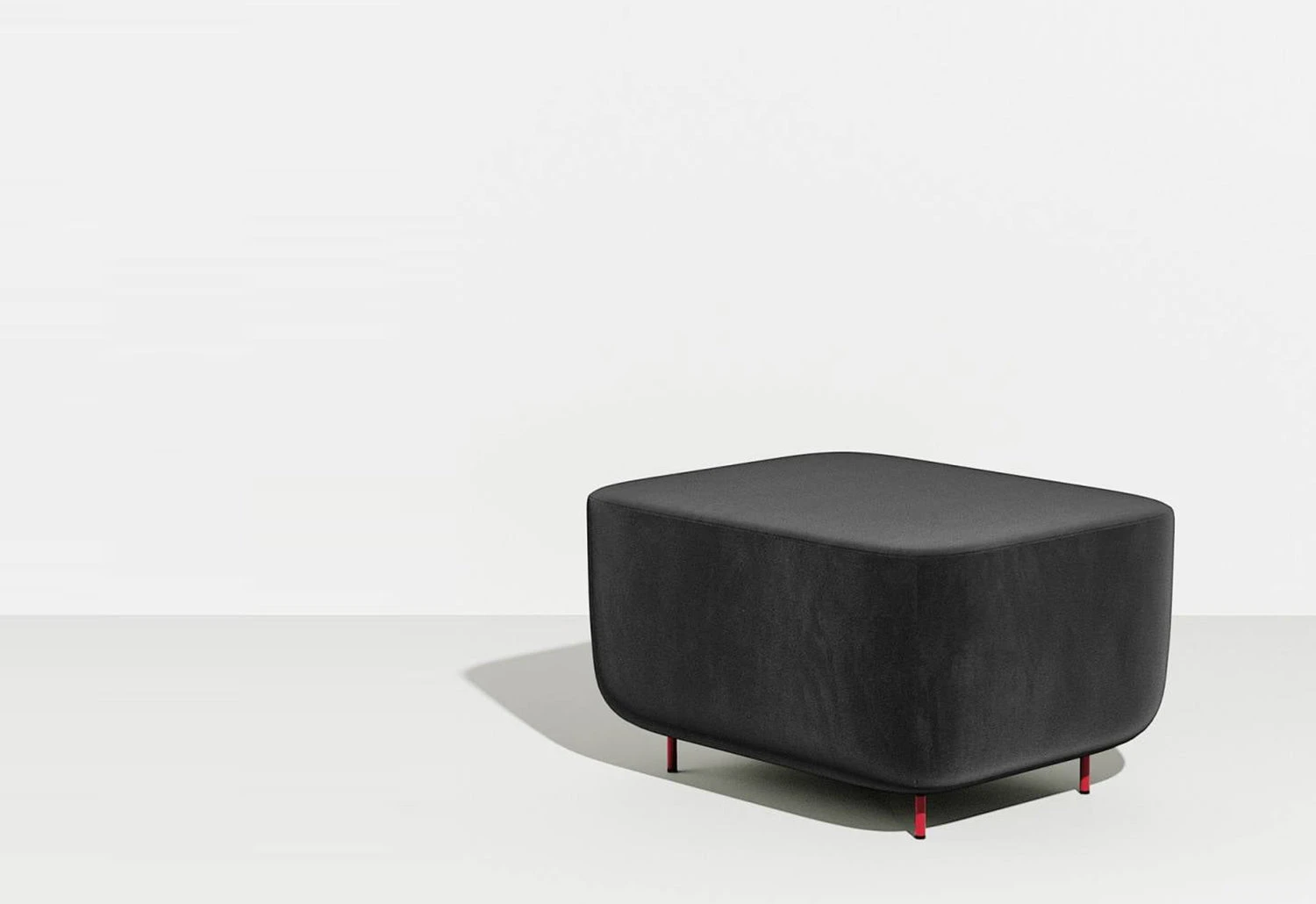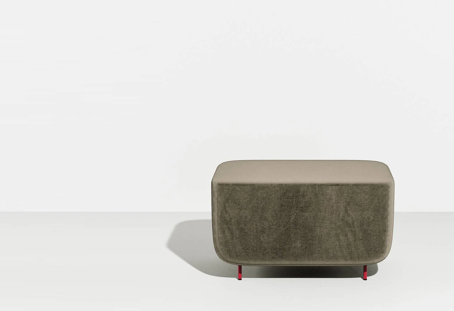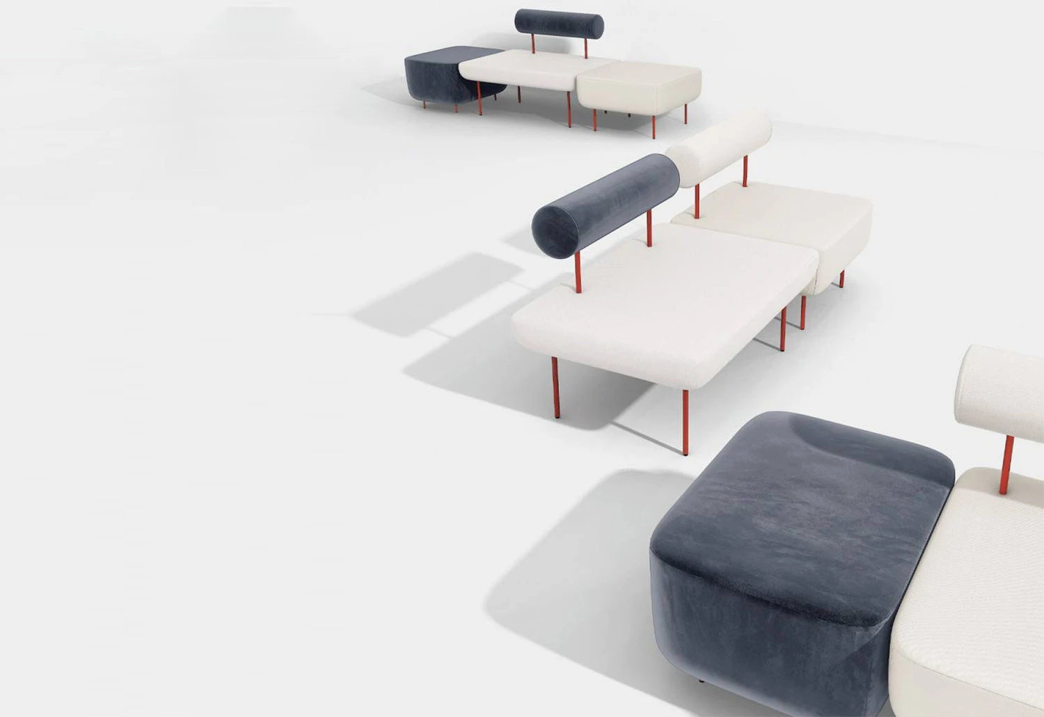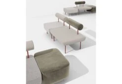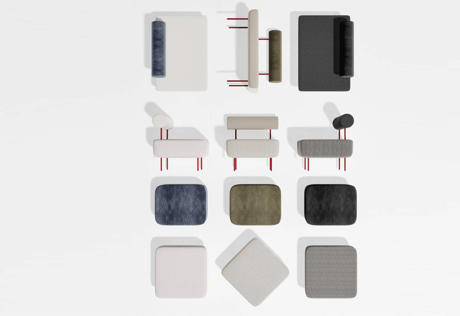 The unique design is suitable for both residential and contract settings and promises an ultra-modern addition to any interior space. The neutral upholstery is contrasted by a striking bright red frame, highlighting the playful design direction of Morten and Jonas’ pieces.