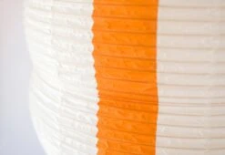 The designers selected the Double Bubble as the template for the anniversary edition with the introduction of a bold, hand-painted band that expresses the lantern’s sculptural form whilst providing a subtle decorative element. The design creates a sense of intrigue as the vertical stripe wraps the circumference of both twin orbs, the orange ochre creating a striking graphic that holds equal presence when illuminated or not. It is a design intervention that reflects Barber Osgerby’s sensitive and thoughtful approach to their work.