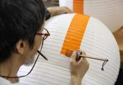 The design is hand-painted by craftsmen at the Ozeki workshops in Gifu Prefecture of Japan. The artists are more accustomed to decorating traditional lanterns with landscape scenes, though an equally deft skill for accuracy and managing paint on paper is essential in the Hotaru project.