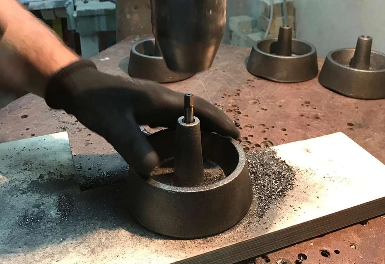 The option for a base was always anticipated in the design of the lanterns and through a process of exploration, a simple pedestal evolved. Utilising the weight of cast iron allowed for a minimal footprint, whilst honouring the historical methods of paper and iron making. The stand design affords the sculptural Hotaru lanterns a different application and introduction to new environments. The stand and metal components are in black-anodised aluminium.