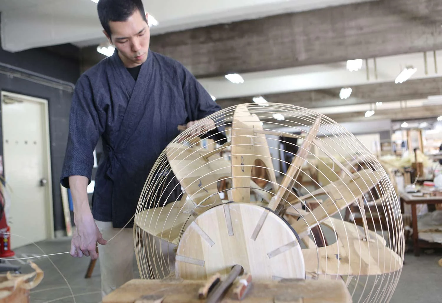 The Hotaru lanterns are constructed using traditional techniques and materials, with translucent Mulberry bark washi paper stretched over a bamboo structure that describes a bold contemporary form.
