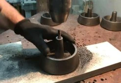 The option for a base was always anticipated in the design of the lanterns and through a process of exploration, a simple pedestal evolved. Utilising the weight of cast iron allowed for a minimal footprint, whilst honouring the historical methods of paper and iron making. The stand design affords the sculptural Hotaru lanterns a different application and introduction to new environments. The stand and metal components are in black-annodised aluminium.