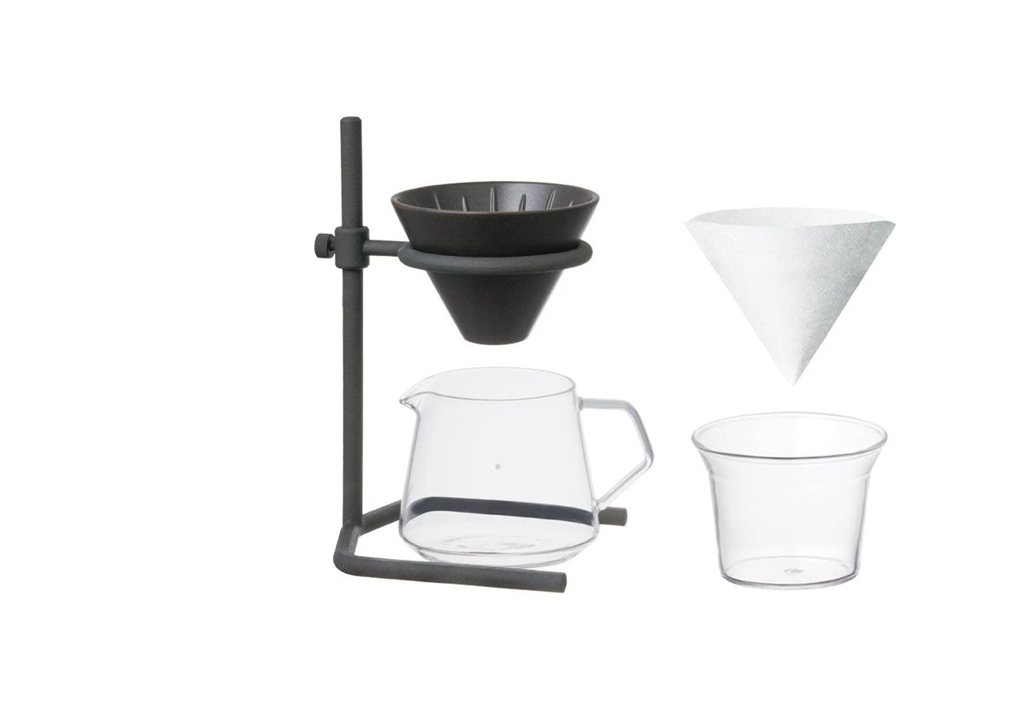 The Slow Coffee brewer stand set provides all you need for the ultimate pour-over coffee resulting in a richly tasting cup of coffee.