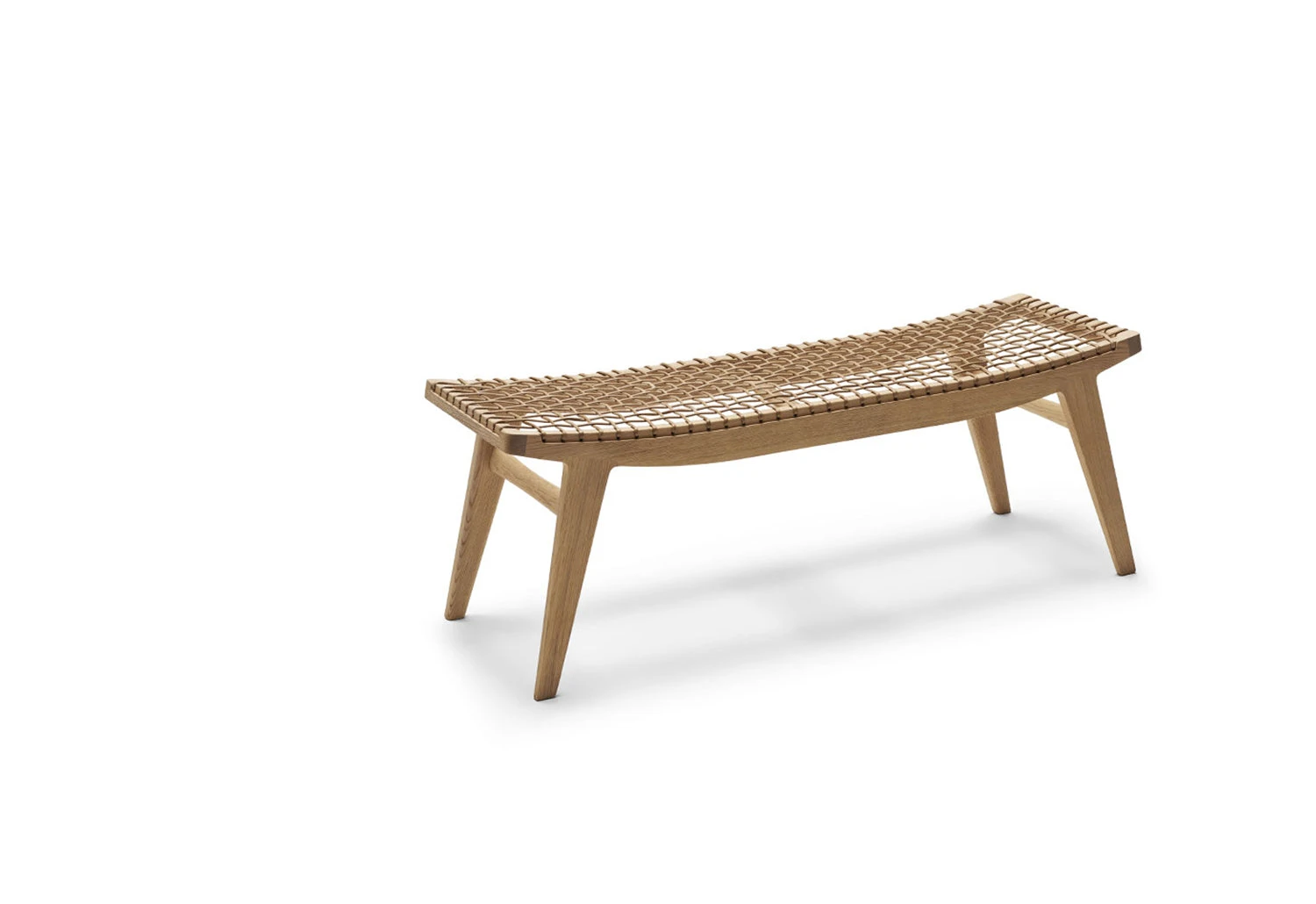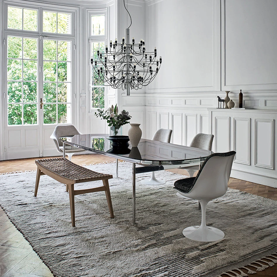 The Knoll Klismos bench offers an authentic blend of quality materials and dynamic, slender forms. The majestic solid wooden frame complements the natural cotton cord weave seat. Optional leather cushions in either black or natural brown leather can be added for greater comfort.