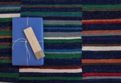 Technically complex, the Lattice collection combines colours in a rhythmically reproduced pattern. In this manner, balance, proportion and irregularity become key elements in this unique creation. As well as being crafted by hand, the Afghan wool is also spun by hand, which allows for some unique colour tones to be highlighted.