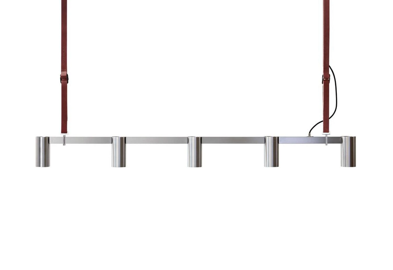 The handmade chandelier with its minimal rounded form exemplifies Hoflin’s design philosophy. Its linear shape is a contemporary twist on a traditional opal globe suspension light, a modern elegant form.