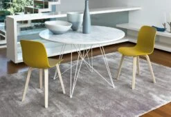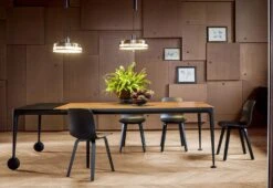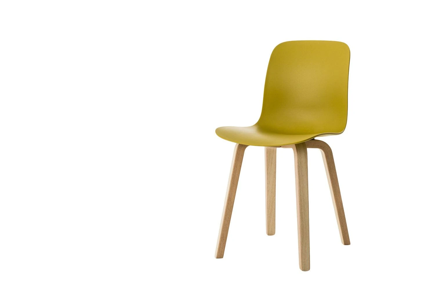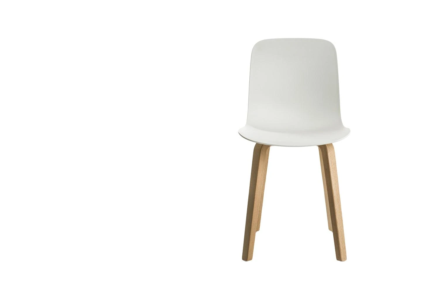 Versatile chair designed by Naoto Fukasawa with an inviting seat and a four-legged base in contrasting materials.