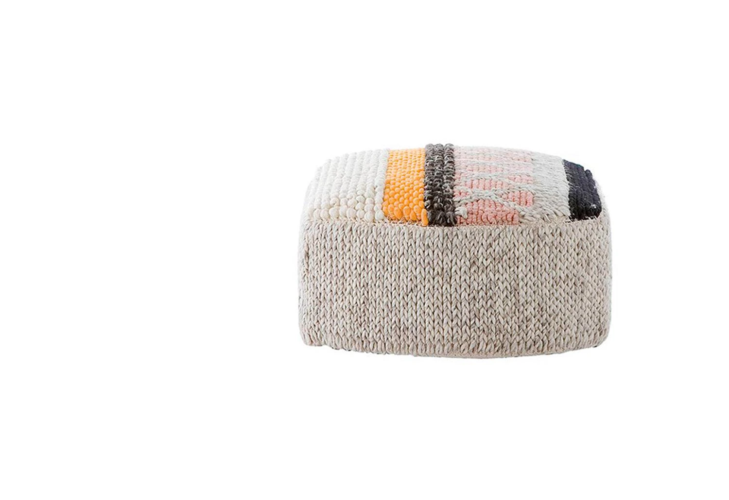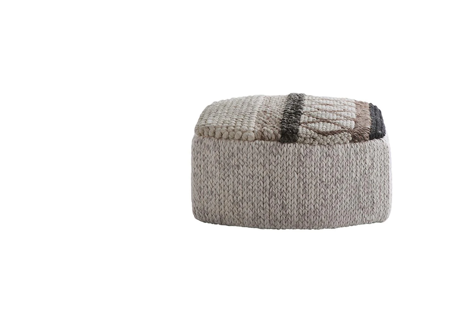 Pouf with a wool cover, the design based on a patchwork of different wool knits. Three different shapes available, to combine as โsleevesโ (Mangas) or to work as freestanding elements. Available in two colourways.