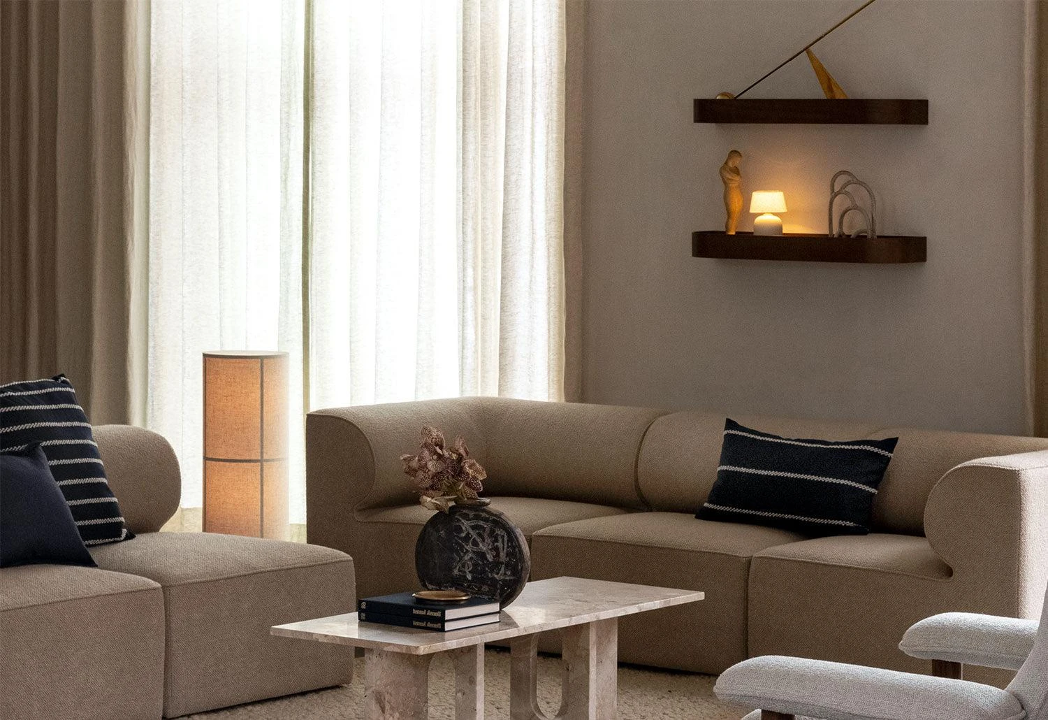 An elegantly minimal design, Menu’s wall mounted Epoch shelf provides an understated storage solution and backdrop for decorative objects.