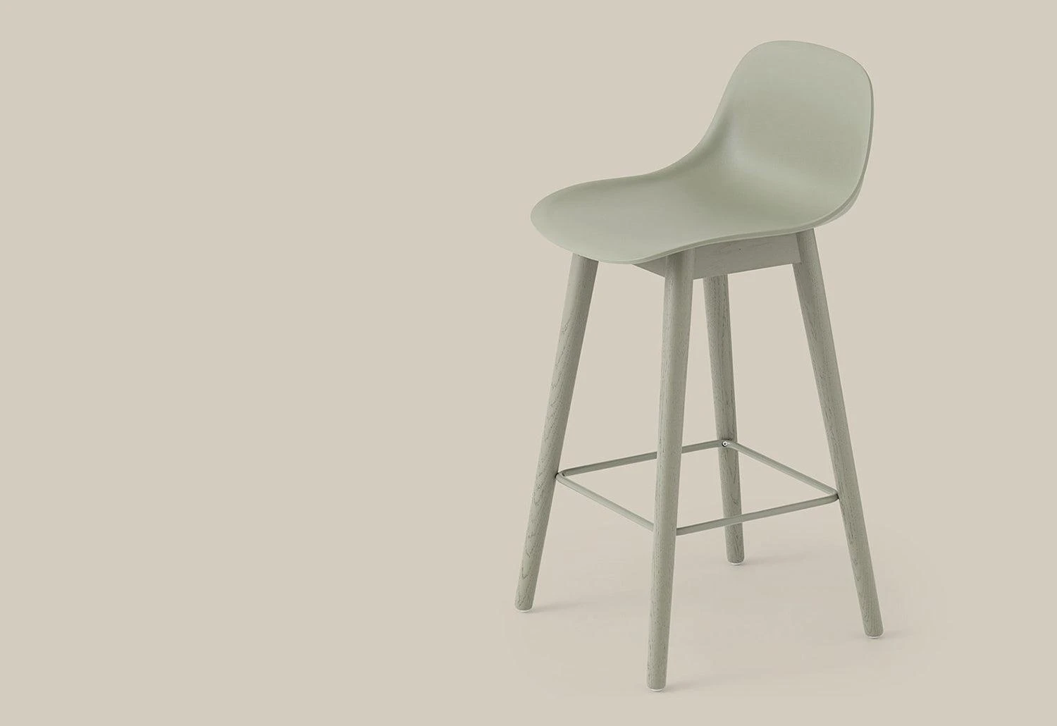 Fiber barstool with wood base by Iskos-Berlin for Muuto.