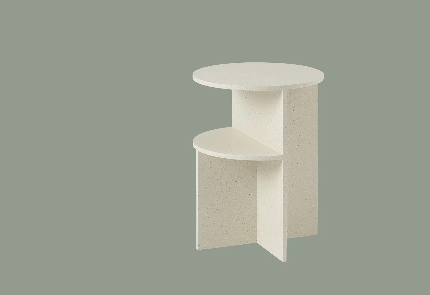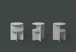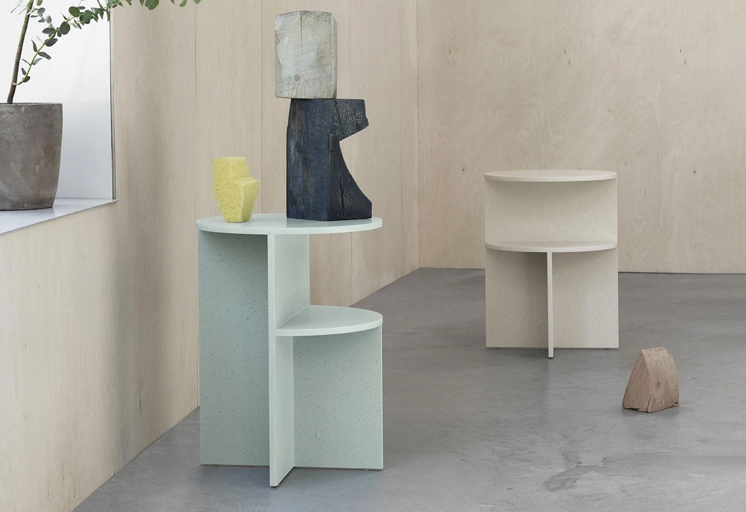 Half table and half sculptural object, the Halves table earns its name through its unique blend of form and function. Featuring two different ‘halves’, the table can be revolved to display either a lower display shelf or basic vertical support for a more minimal look.