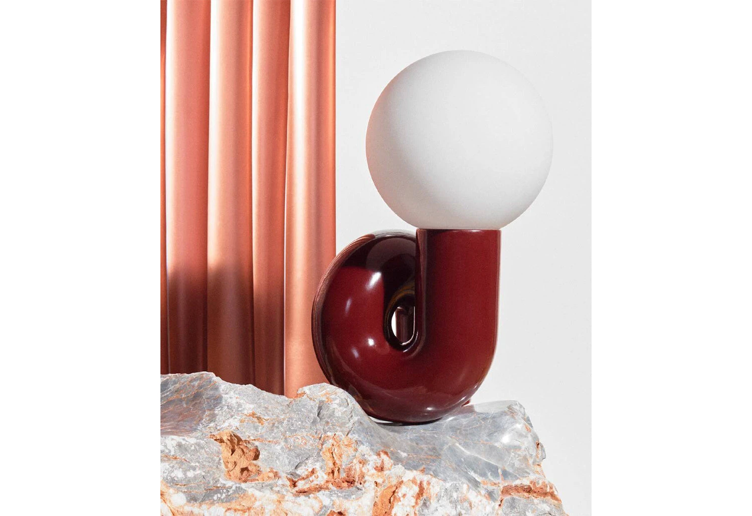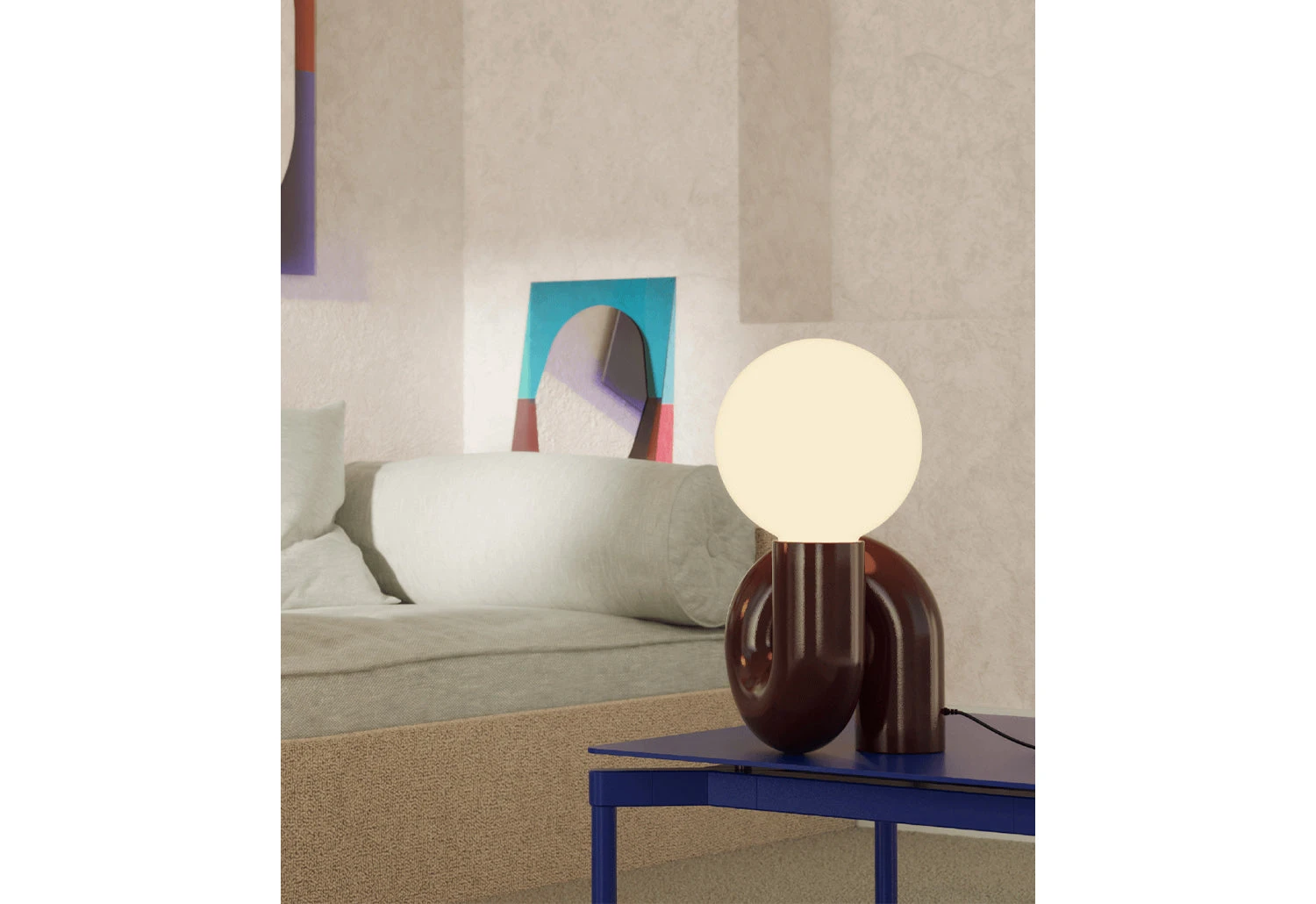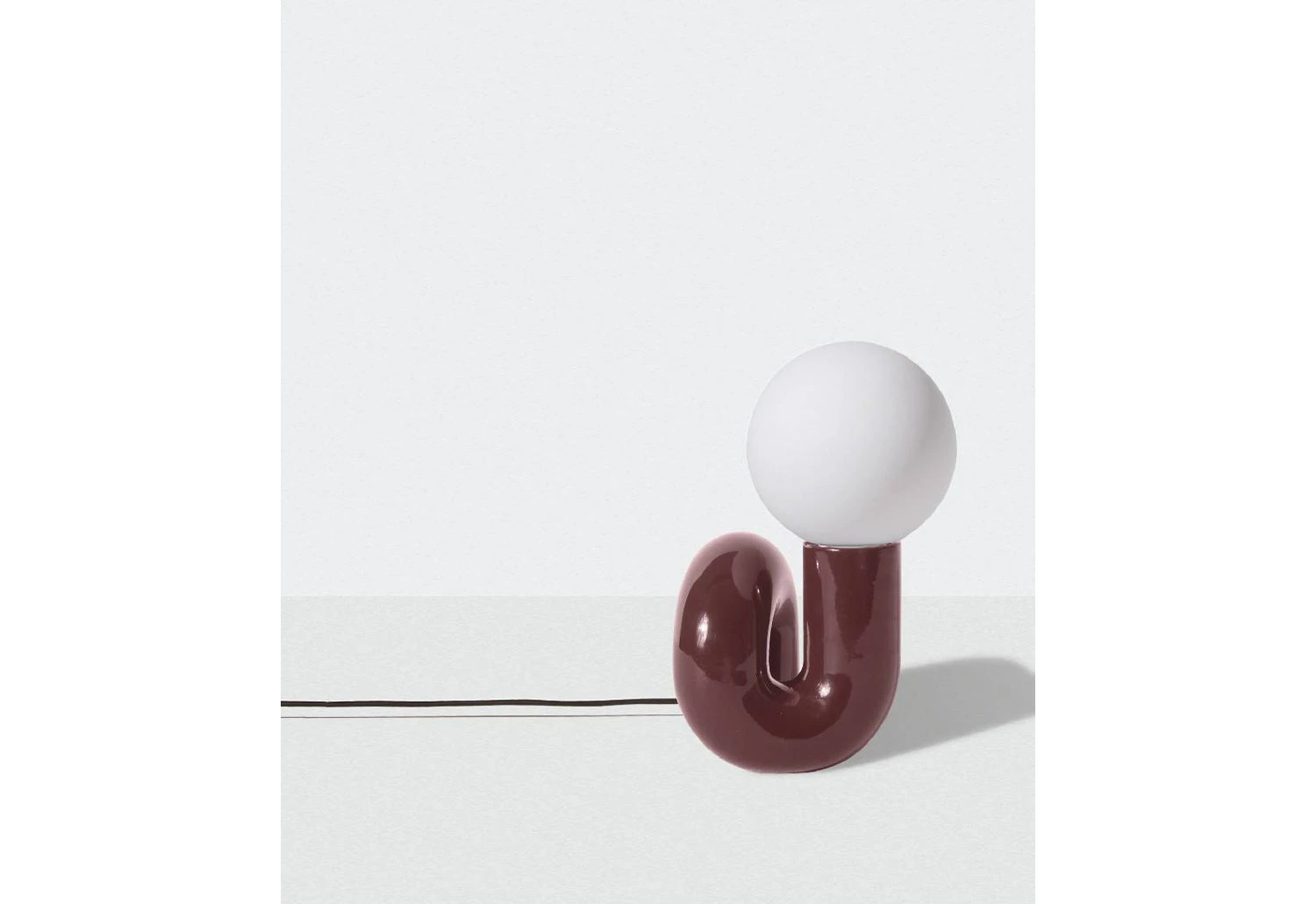 Packed with a dimmer, the sculptural organic design of the lamp allows the lamp to produce simultaneously pleasant, homogenous and powerful light perfect for use in the living room, bedroom or hallway as a statement piece. The lamp requires a complex mould to produce its distinctive rounded form. The large lamp requires a six-part mould and painstaking manual work before firing it in the kiln. The colour finish is then obtained using a counter-gravitational dying process.