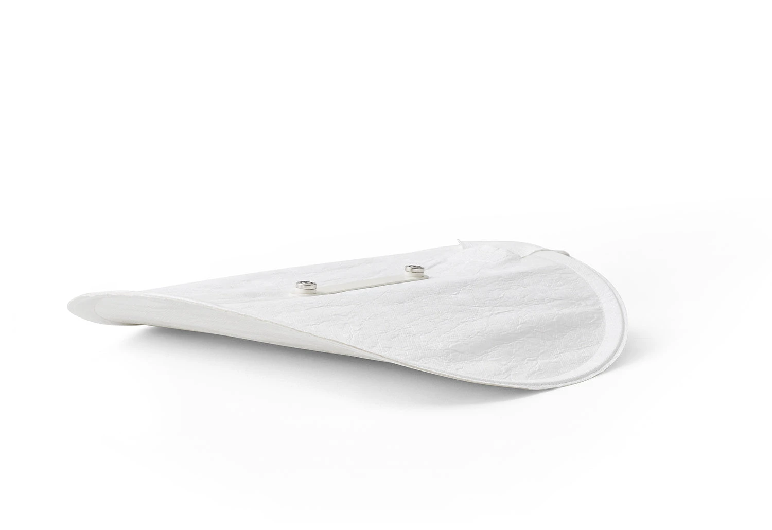 Part of the New Works Tense Series of lighting, the Tense wall lamp features the same airy, light cloud-like design. The Tyvek shades diffuse the light and create a sculptural sense suitable for different interior settings. Supported by a black powder-coated aluminium base, the shade brings a softness-like fabric quality and resembles crisp paper, with its crinkled texture highlighted in a delicate exchange of light and shadow. The Tyvek shade also offers strength, class 1 flame retardancy, and 100% recyclability.