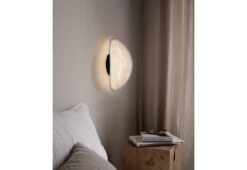 The Tense Wall Lamp comes with an integrated LED light source and a discrete pin switch by the base.