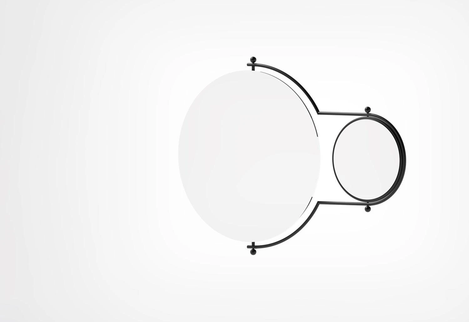 A classic of 1980s British design, the Orbit mirror combines a large wall-mounted circular mirror with a smaller vanity mirror positioned on a swing arm much like a satellite orbiting a planet.
