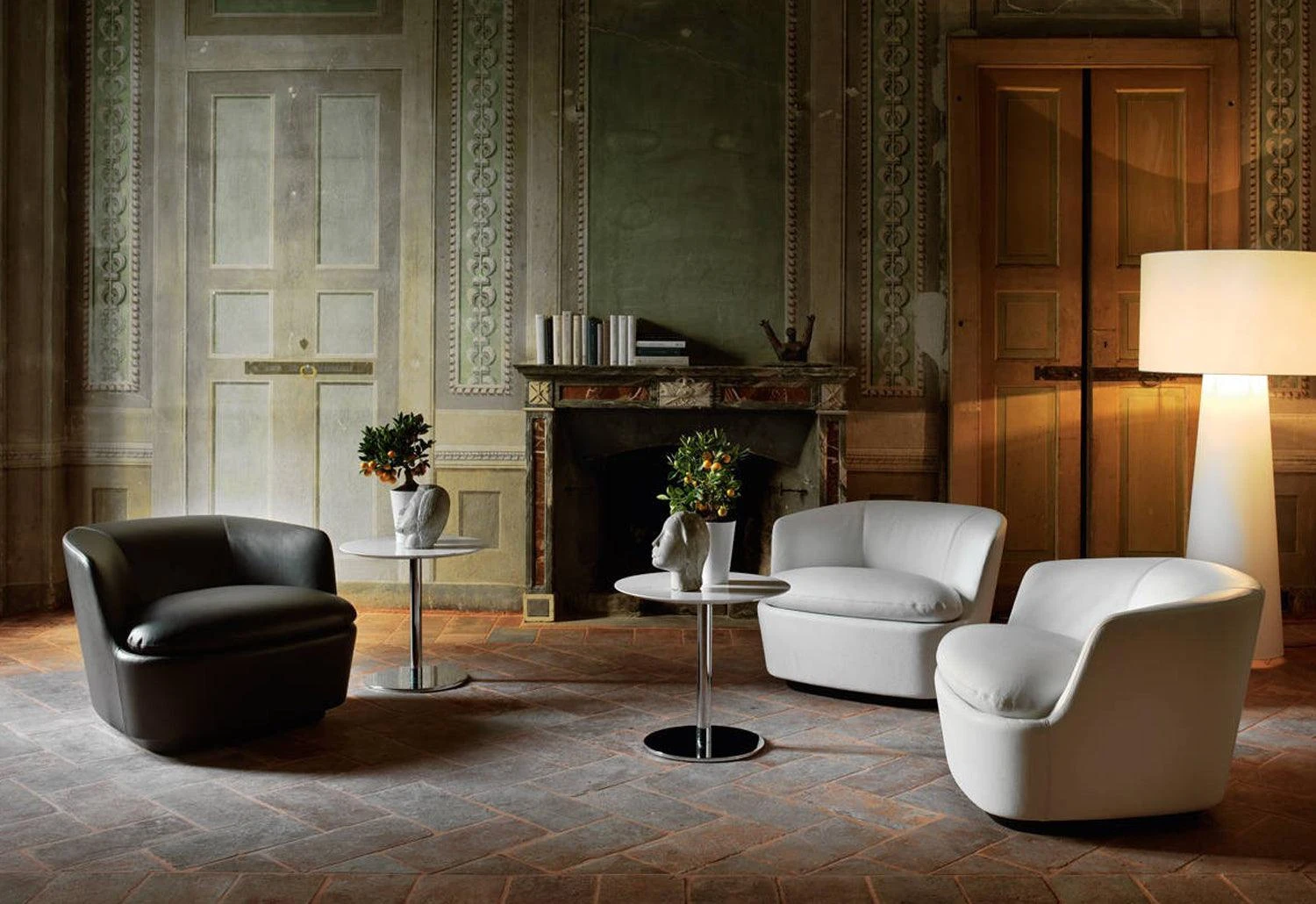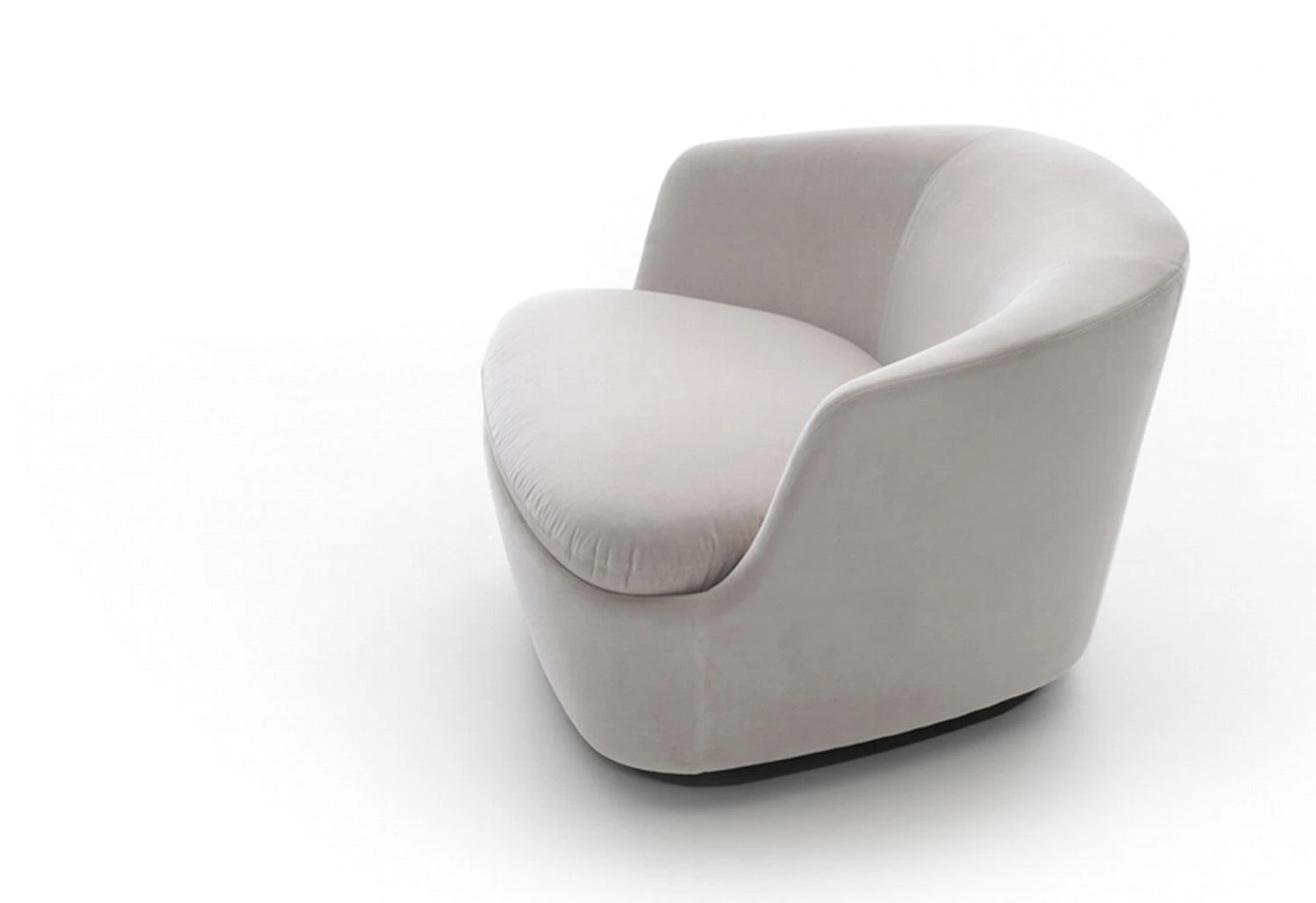 The armchairs are padded with multi-density polyurethane foam and fibre and are available with either a fixed or swivelling base made of foam.